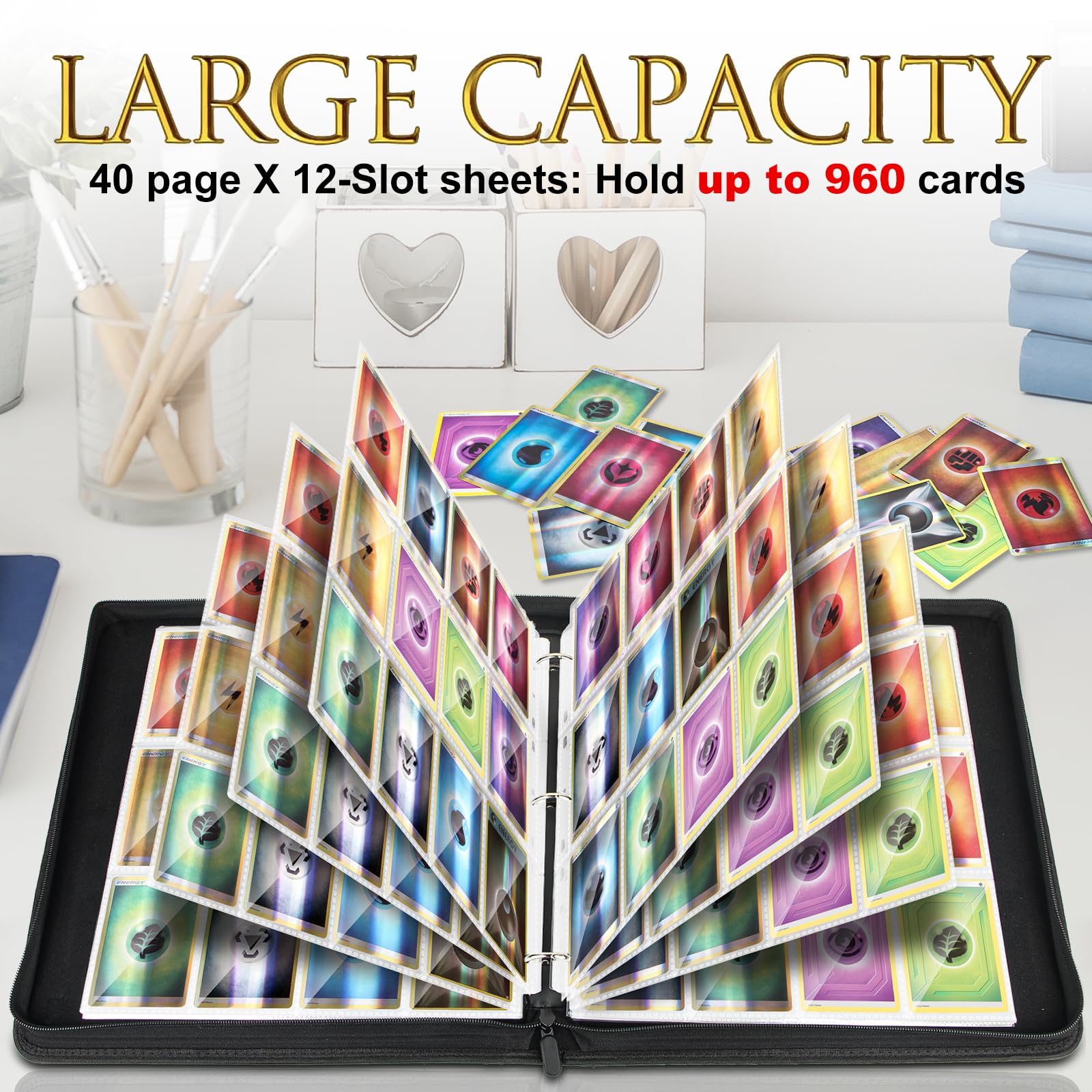 JoyHood Card Binder for Trading Card Card Collection Binder with 12 Pocket - Hold Up to 960 Cards Card Album Holder compatible with TCG/PM/MTG/OPCG/YGO Card (Black 12 Pockets)