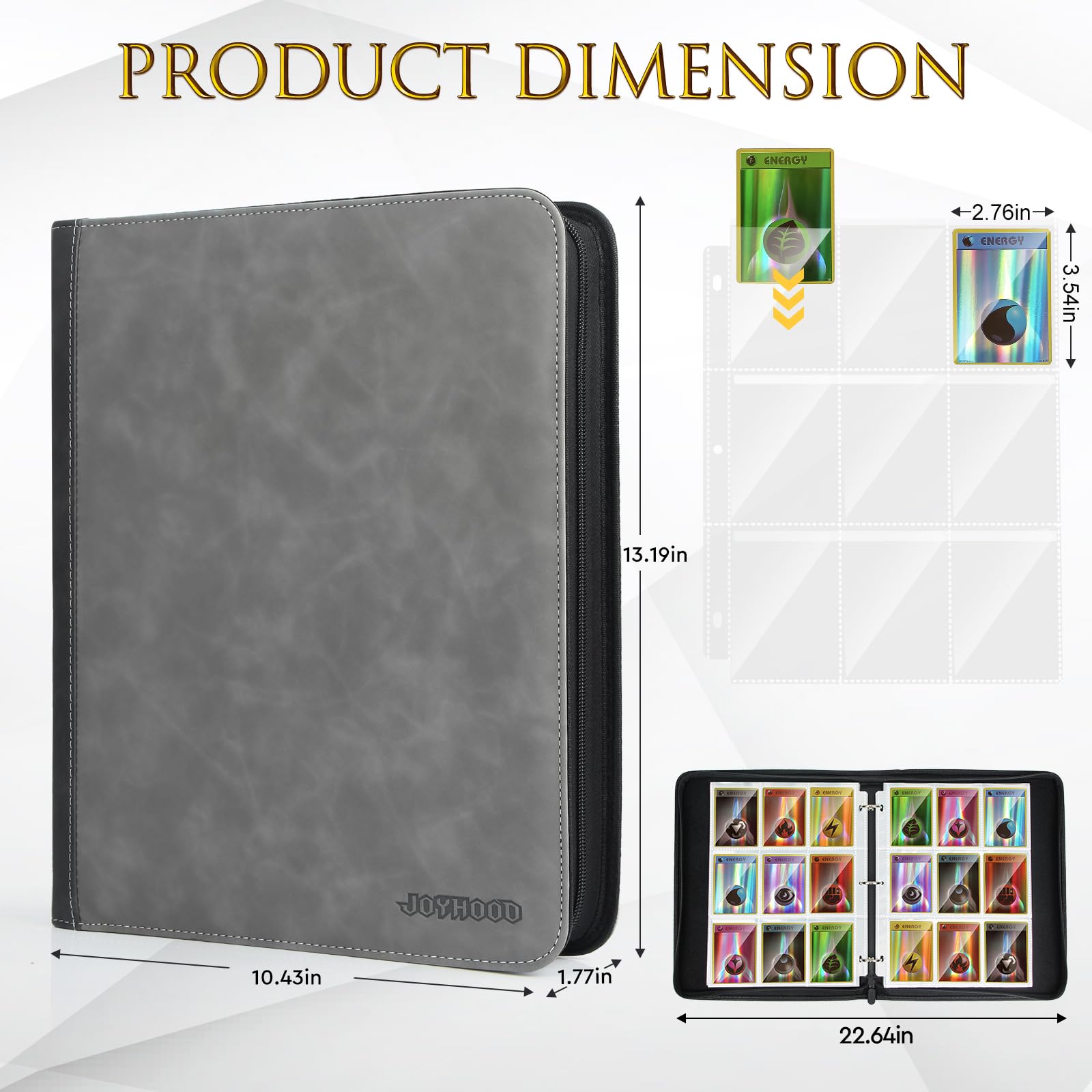 JoyHood Card Binder for Trading Card Card Collection Binder with 9 Pocket - Hold Up to 900 Cards Card Album Holder compatible with TCG/PM/MTG/OPCG/YGO Card (Grey 9 Pocket)