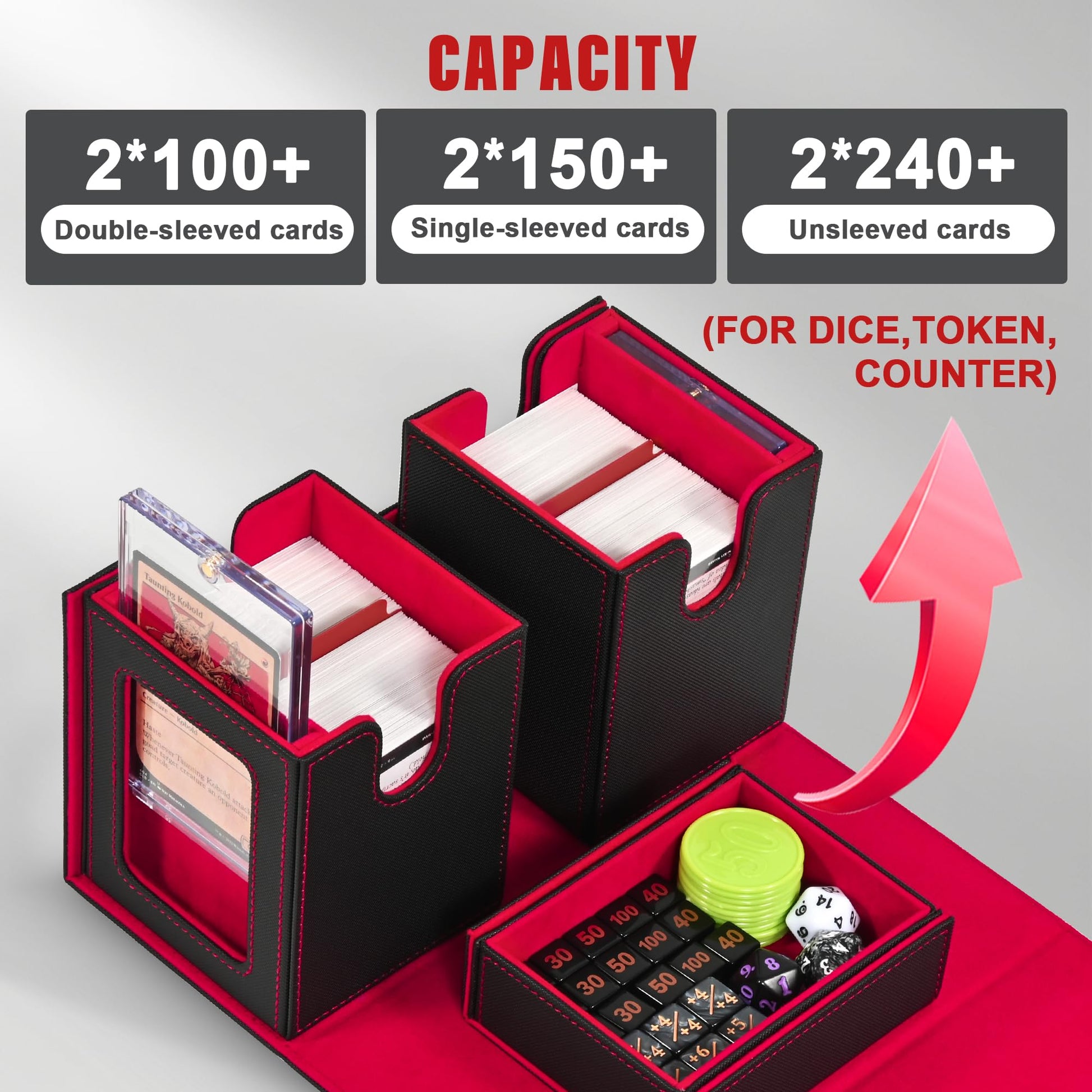 View compareKabinka Deck Box for MTG with Commander Display 3 in 1 Trading Card Storage Box Fit 200 Double-sleeved Cards Removable Deck Case for TCG/Sports Cards with 2 Magnetic Card Holders (Black Red)