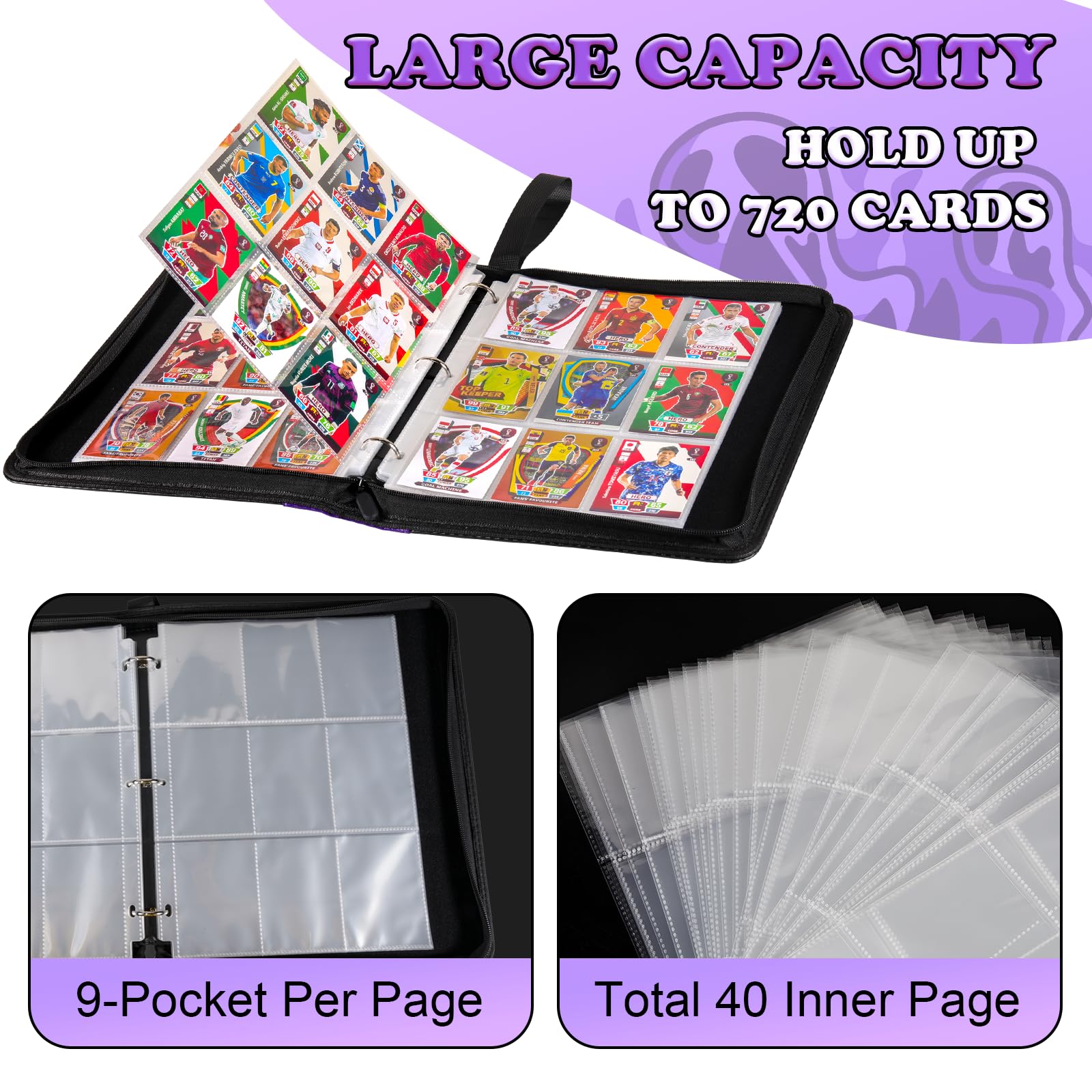 LIMSTDIC Card Binder for Pokemon Card 9 Pocket 40 Double-Sided Pages for 720 Card Pocket enhanced Zip PU Card Binder for Pokemon Collectible For TCG MTG Baseball Football Trading Card Game(Purple)