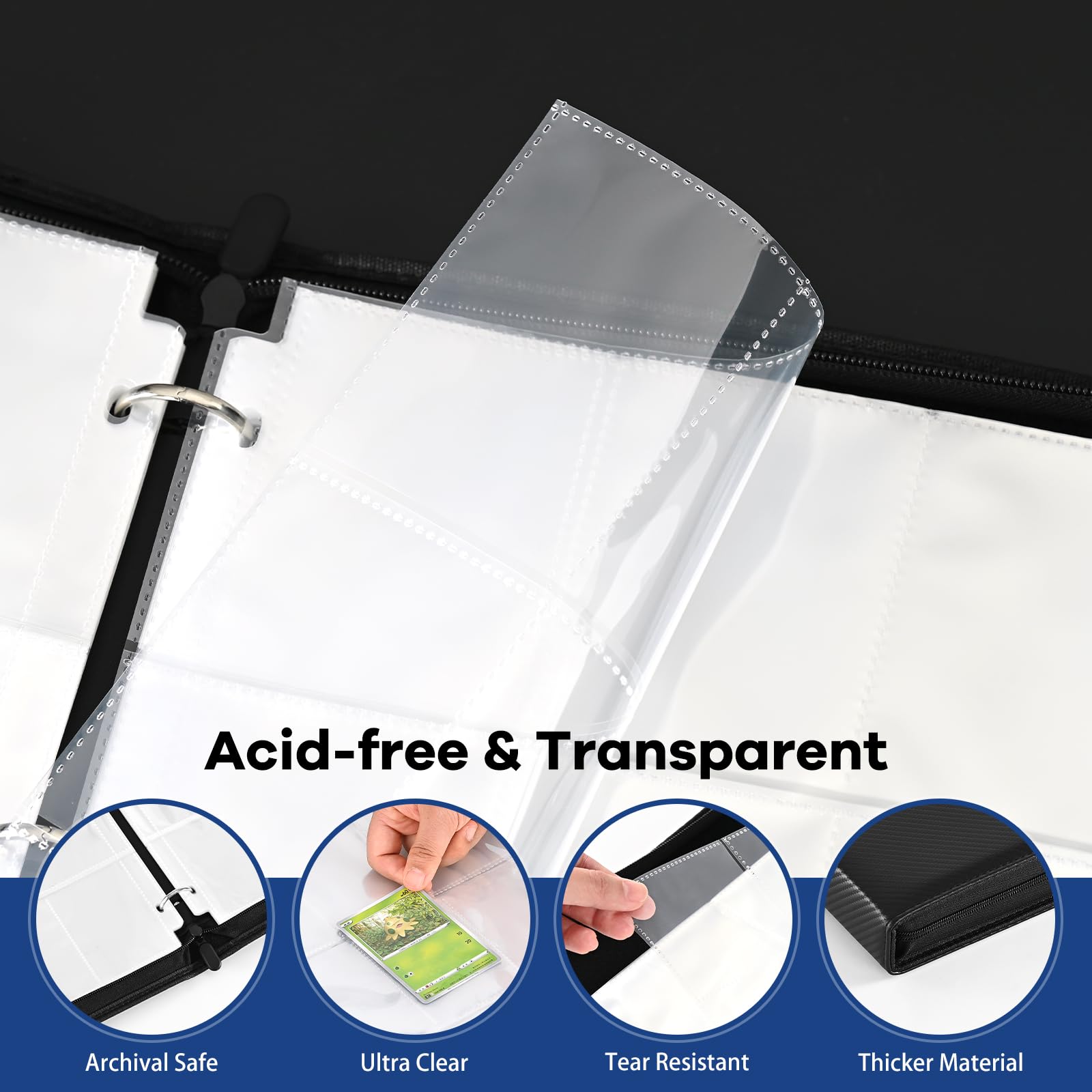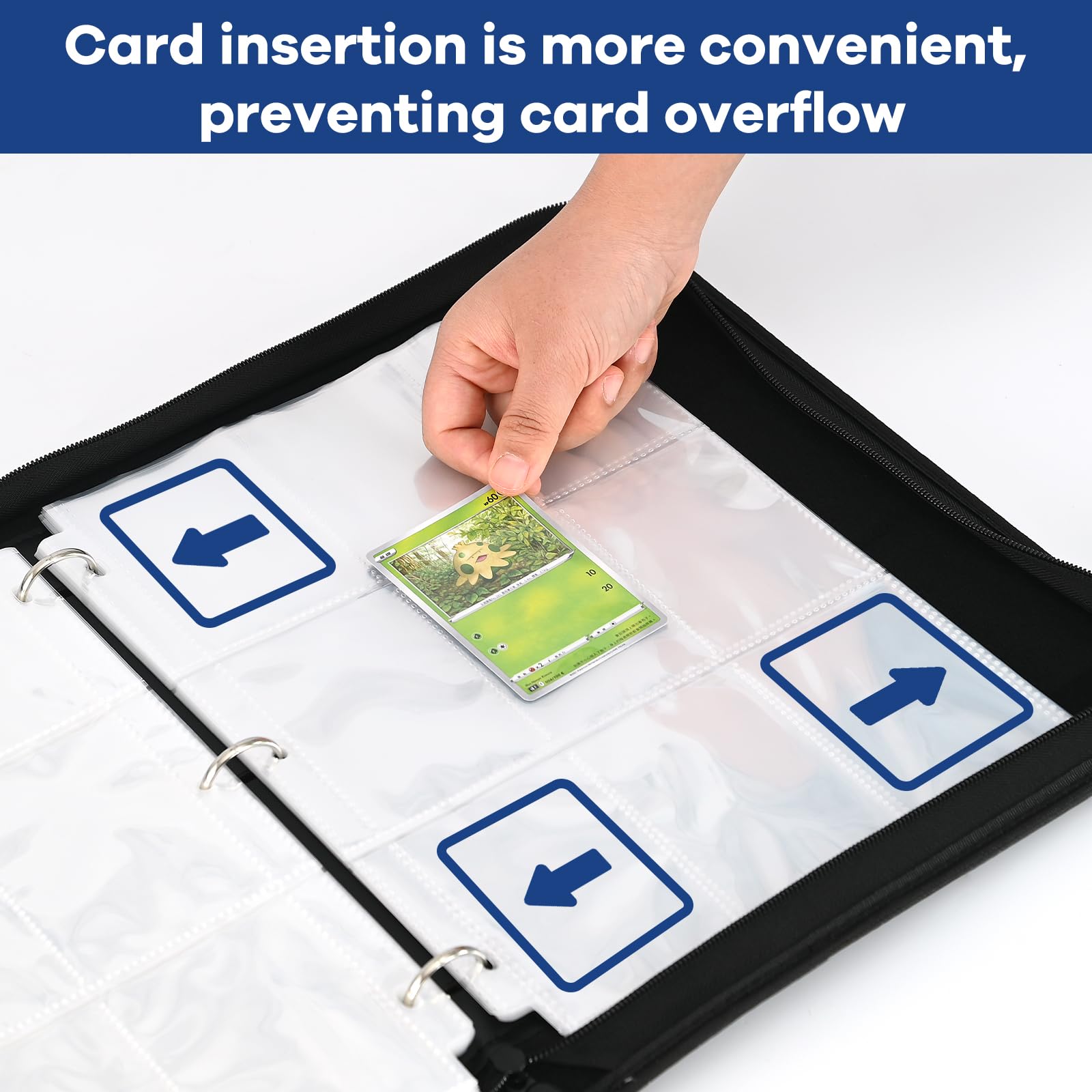 MAYGIBYE Card Binder 9 Pocket enhanced Zip Trading Card Binder 900 Double Sided Pocket PU Collection Binder Collector Album Card Folder for MTG TCG Sports Cards (Twill 9 Pocket)