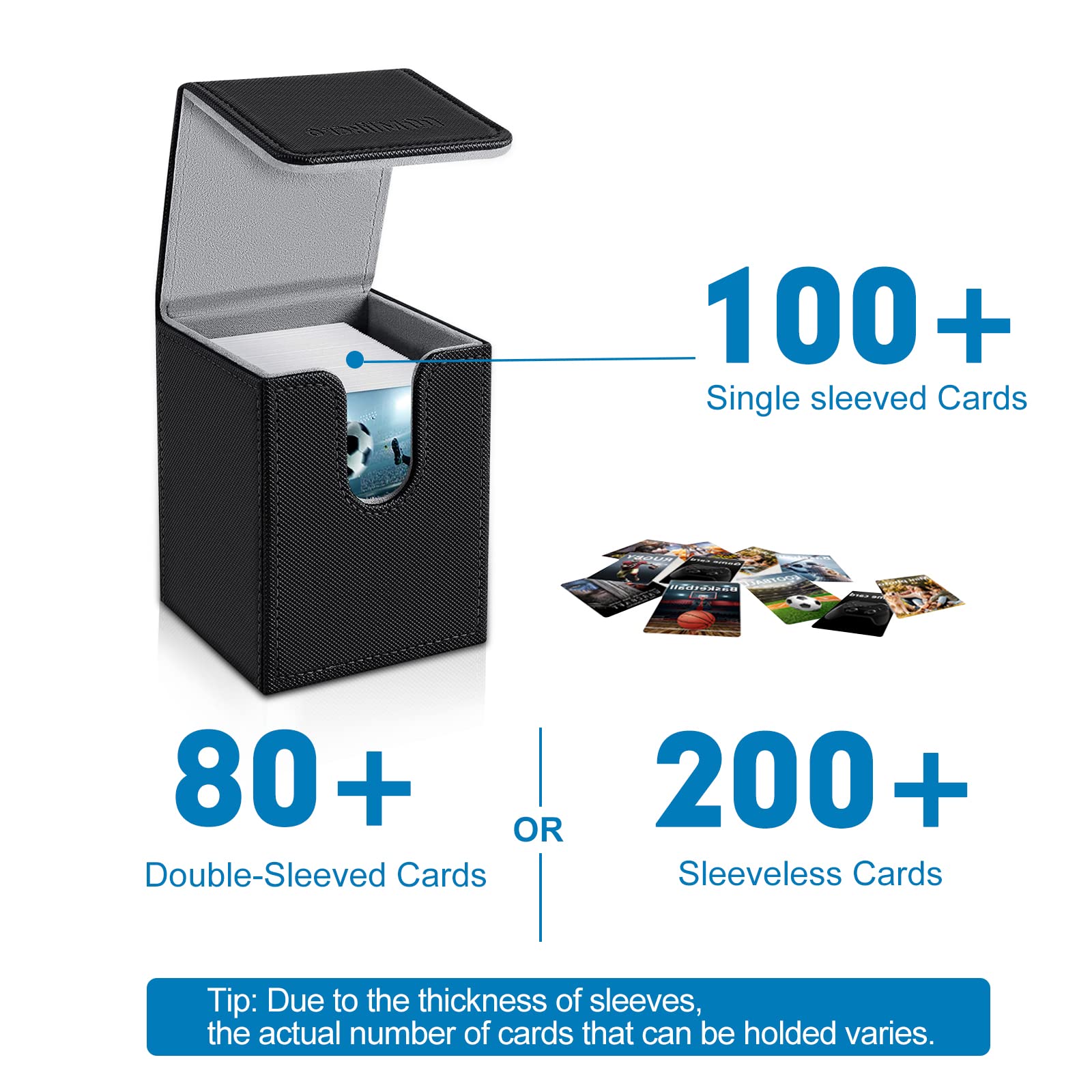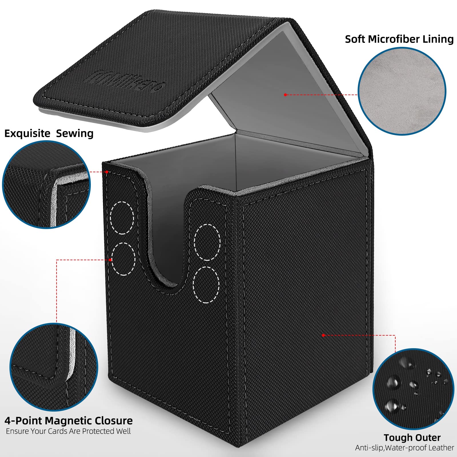 View compareMlikero 4 Pack Card Deck Box Large Size Fit for 100+Single Sleeved Cards with 4 Dividers Trading Commander Deck Box Compatible with Mtg Card Deck enhanced Leather Deck Box for Trading Cards