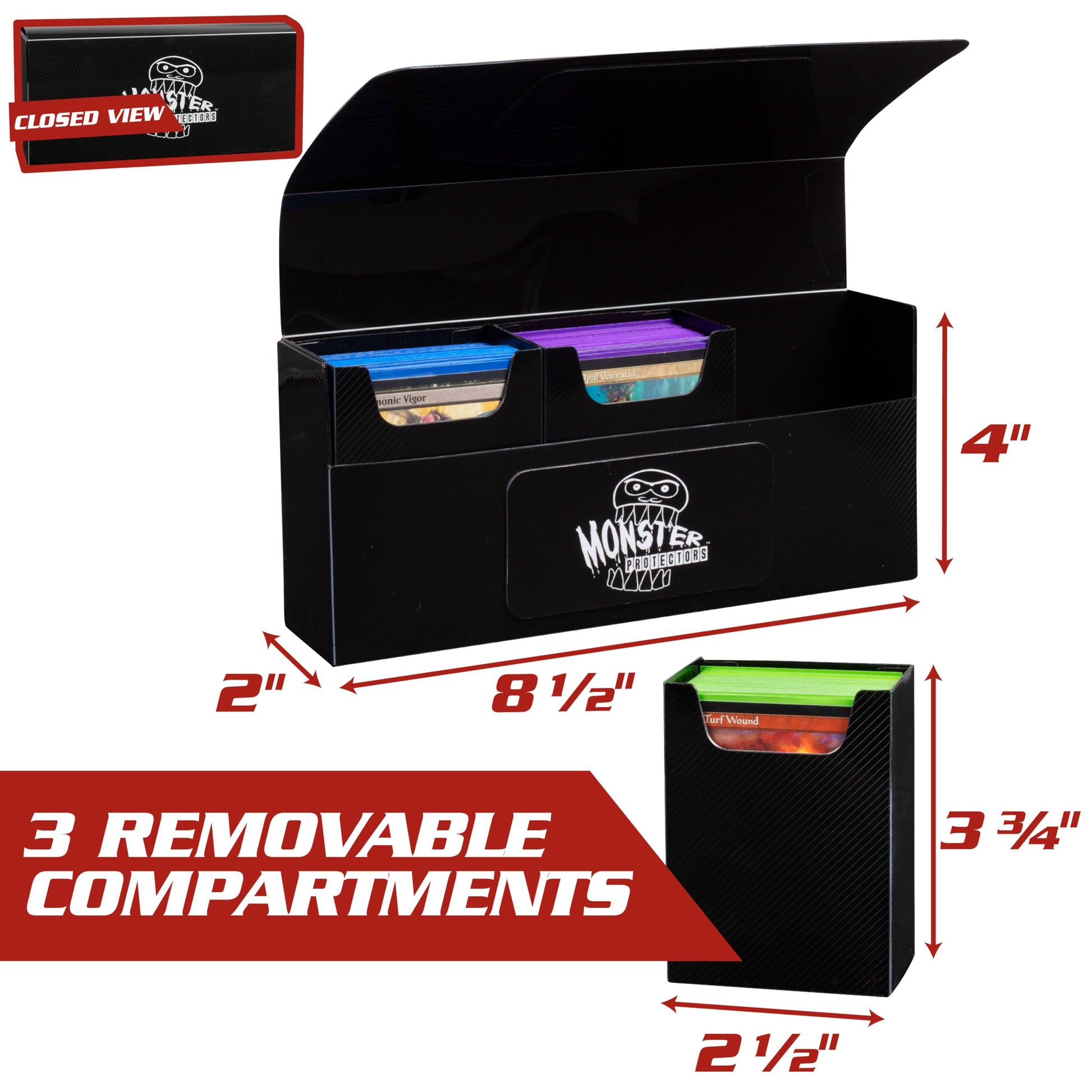 Monster Protectors Magnetic Triple Deck Box - White, Holds 225 Gaming TCGs, Self-locking Closure, Compatible w Standard & Smaller Size Gaming Trading Cards, Removable Construction, Gift