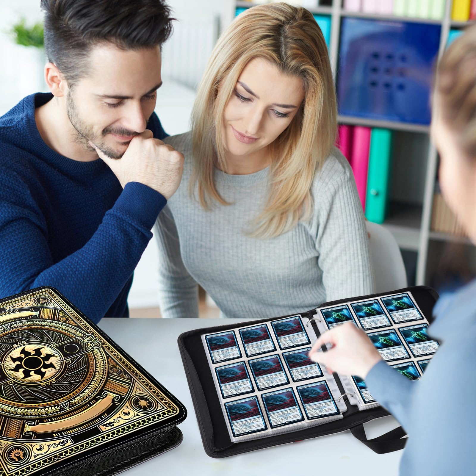 MTGPRO 9 Pocket Card Binder Trading Card Binder enhanced 720 Double PU Card Collection Binder with Sleeves Card Folder for MTG TCG Sports Cards (Gold)