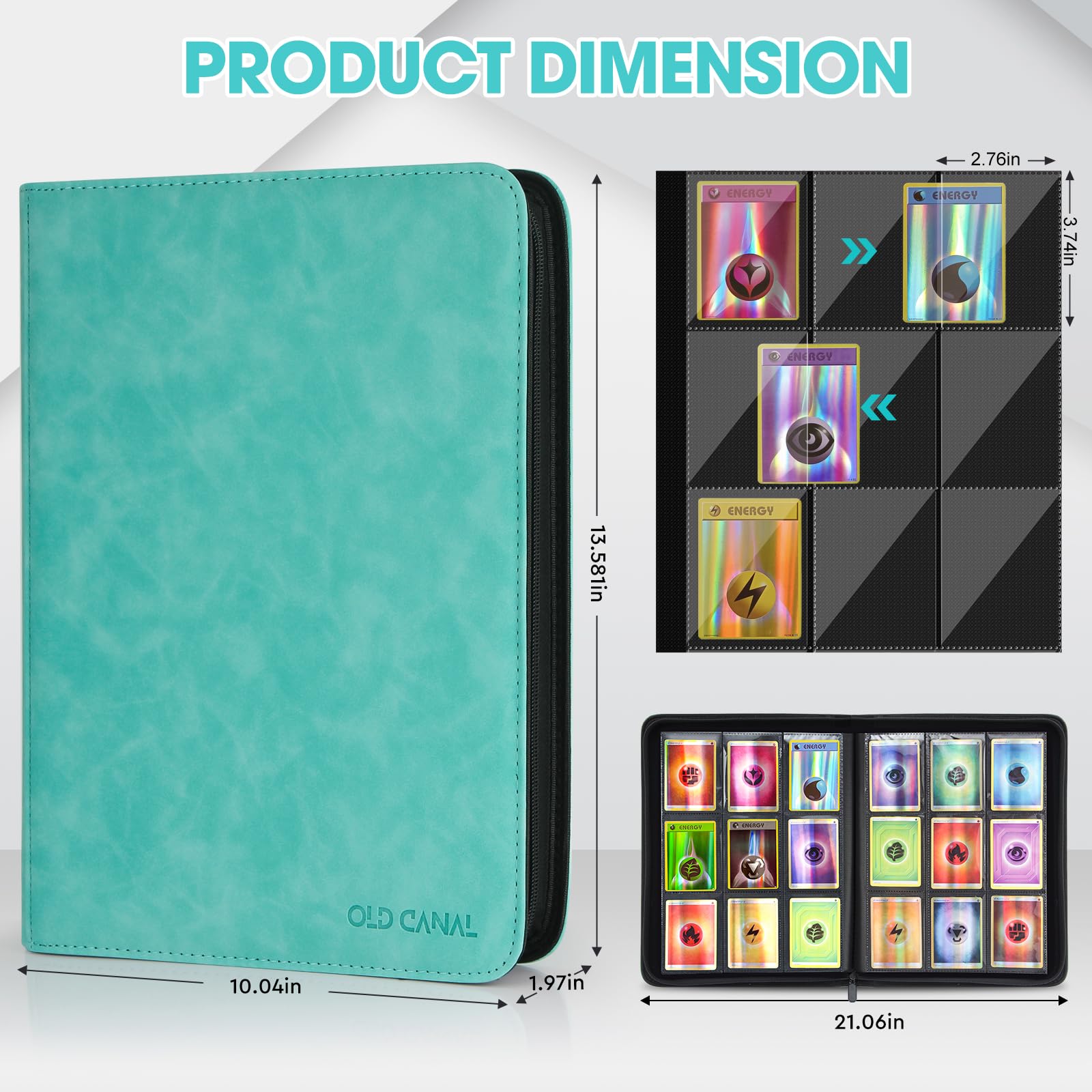 Old Canal Trading Card Binder 9 Pocket Card Album Folder Hold Up to 540 Cards enhanced and Durable Zipper Binder Cards Holder Album for MTG TCG Baseball Cards Football Cards (Tiffany Blue)