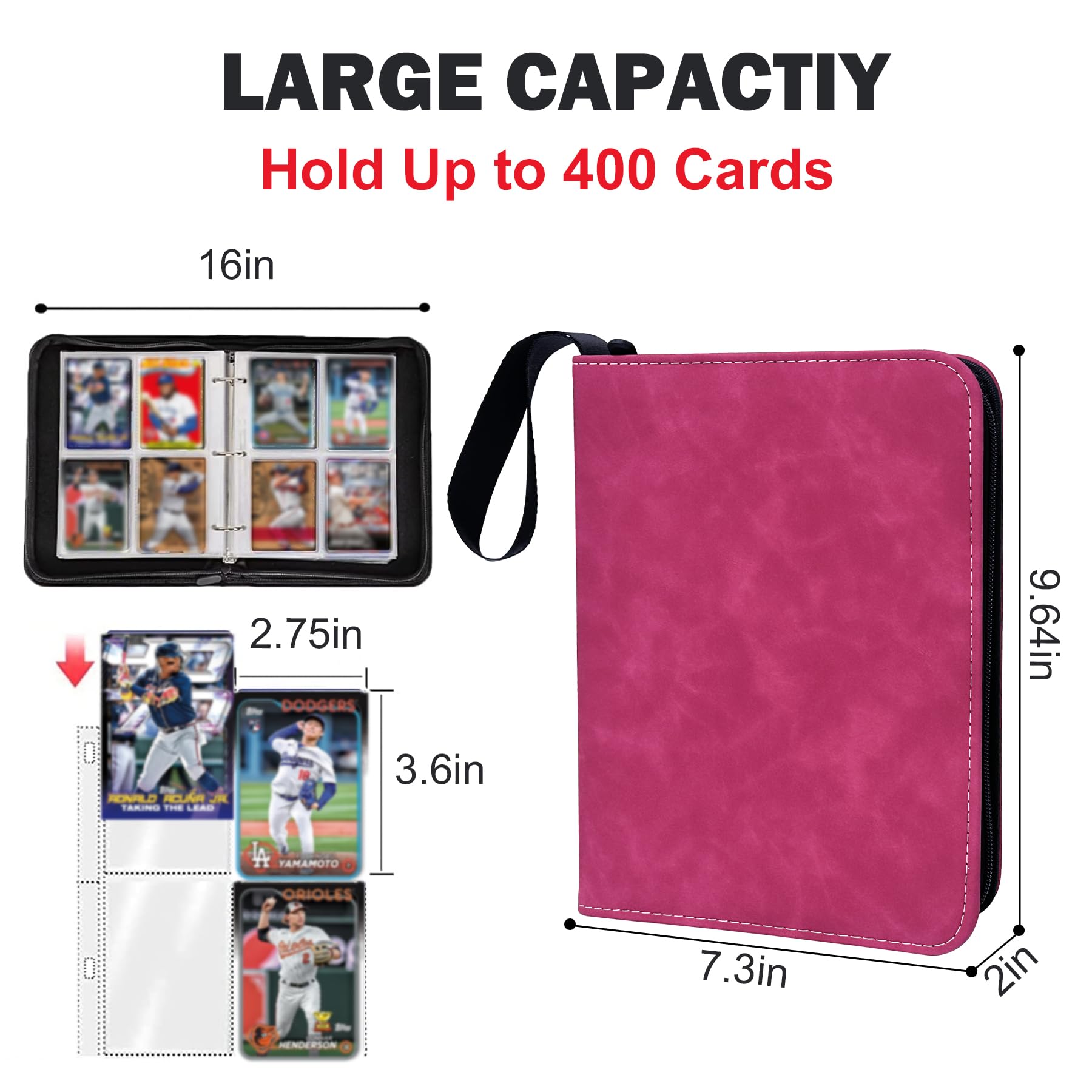 Pink Card Binder for Girls 400 Pockets Double-Sided Trading Card Storage Bag with Removable Sleeves Collectible Card Albums for MTG TCG Photocards (rose red)