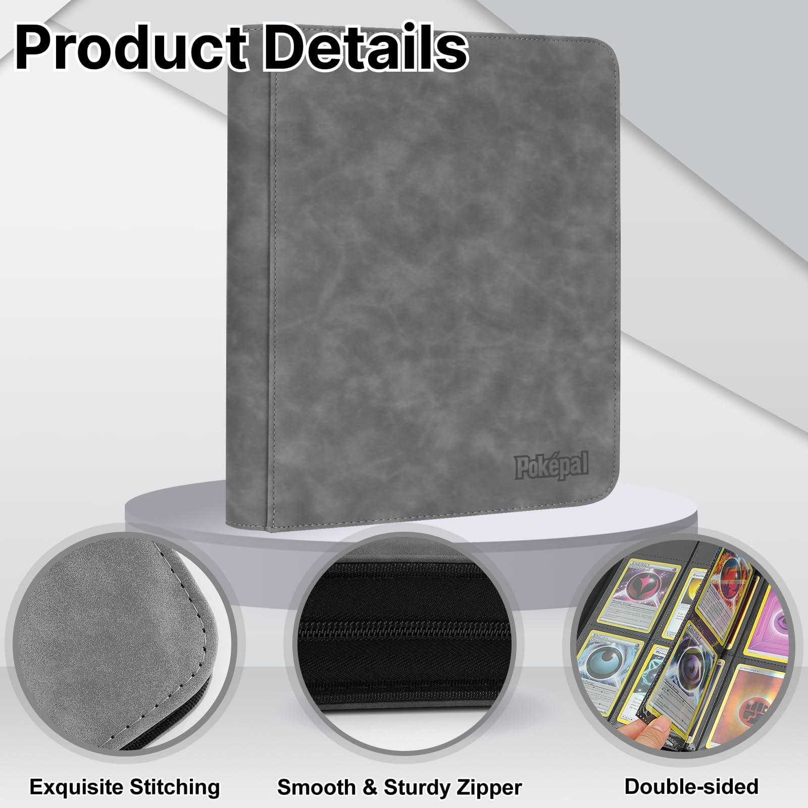 Pok?pal Trading Card Binder 12 Pocket Card Album Folder Collection Binder Hold Up to 720 Cards enhanced Book Durable Zipper Collector Holder for TCG/MTG/OPCG/YGO Sports Cards (Grey)