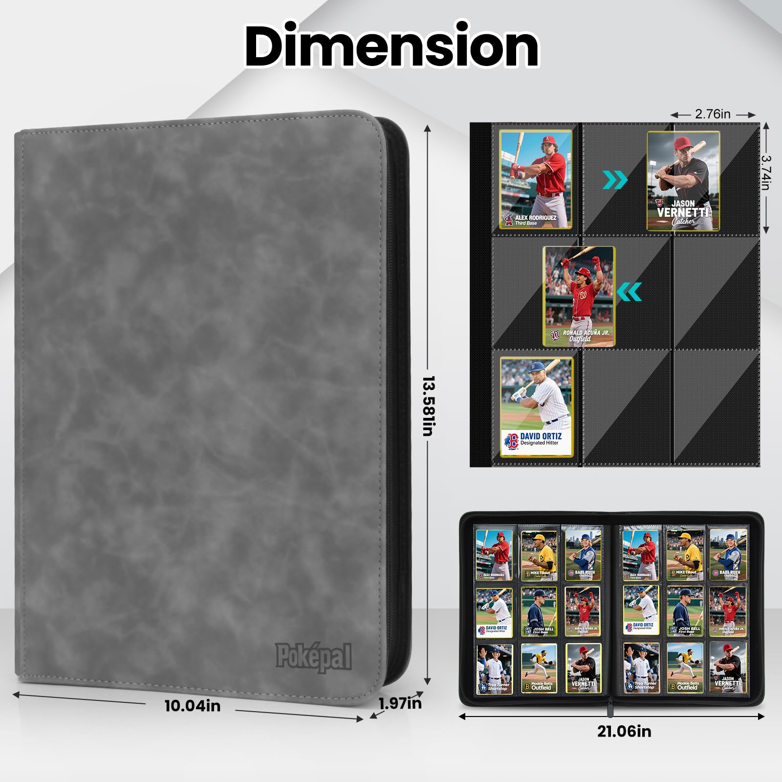 Pok?pal Trading Card Binder 9 Pocket Card Collection Binder for 540 Cards enhanced Card Book Double Sided Pocket Collector Album Card Holder Folder for TCG PM MTG OPCG YGO Sports Cards (Grey)