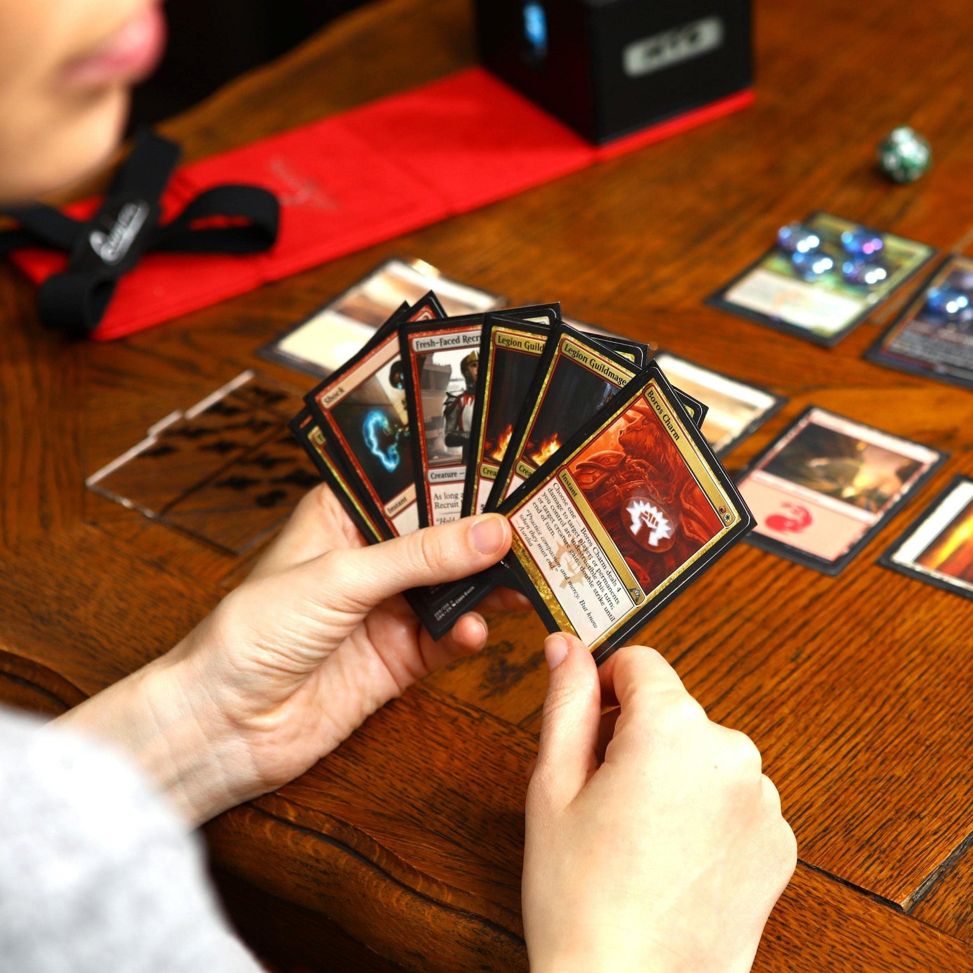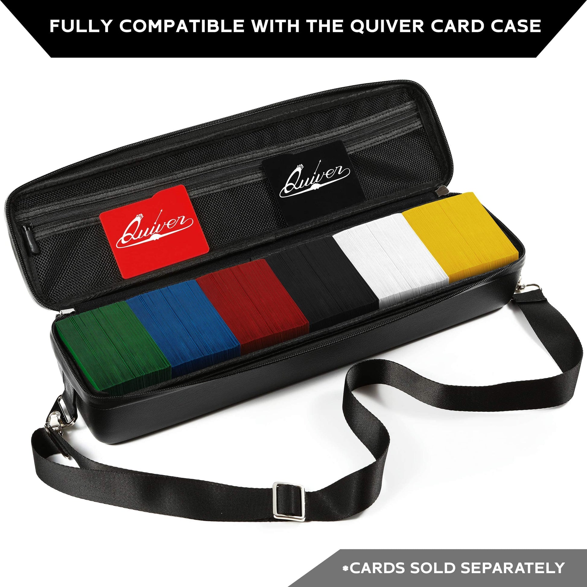 Protect and organize your trading cards with Quiver Time Artemis Black Standard Card Sleeves Shield your playing and trading cards with the Quiver Time Artemis Black Trading Card Sleeves crafted for a snug fit and enduring protection. Product Features: Black Deck Sleeve pack: Each pack contains 200 professional Black Standard Sleeves (4x50 pieces) perfect for trading card game enthusiasts. Innovative Deck Protection Technology: Black side matte transparent side glossy for optimal card presentation. All Artemis enhanced Card Sleeves have a black interior for a consistent and professional play. Precise Fit: At 66 mm x 93 mm Artemis Black Card Sleeves snugly fit cards up to 2.5''x3.5'' (63.5 x 89 mm) designed especially for Double Sleeving. Efficient and Safe Shuffling: The 115 micron thick polypropylene of Artemis Black Trading Sleeves prevent bent corners and scratches and allow for smooth and easy shuffling or sorting of cards. Perfect for professional tournaments and regular use. Compatibility: Quiver Time Artemis Black Standard Card Sleeves are compatible with Magic: The Gathering cards: The Black Apollo Commander sleeves are specially designed to protect your TCG cards and extend their lifespan ideal for tournament play. The 66 x 93 mm size allows for optimal double sleeving for maximum card protection. Quiver Time Artemis Black Standard Card Sleeves are compatible with PM cards: Perfect for keeping your trading cards well-protected improves shuffling and protects against wear and tear during play. The perfect choice for collectors and serious gamers who want to optimally protect their valuable cards with double sleeving. Why Choose Quiver Time? Artemis Standard Size Black Deck Protector Sleeves are perfect for serious players and collectors who want to keep their cards in tournament-ready condition.