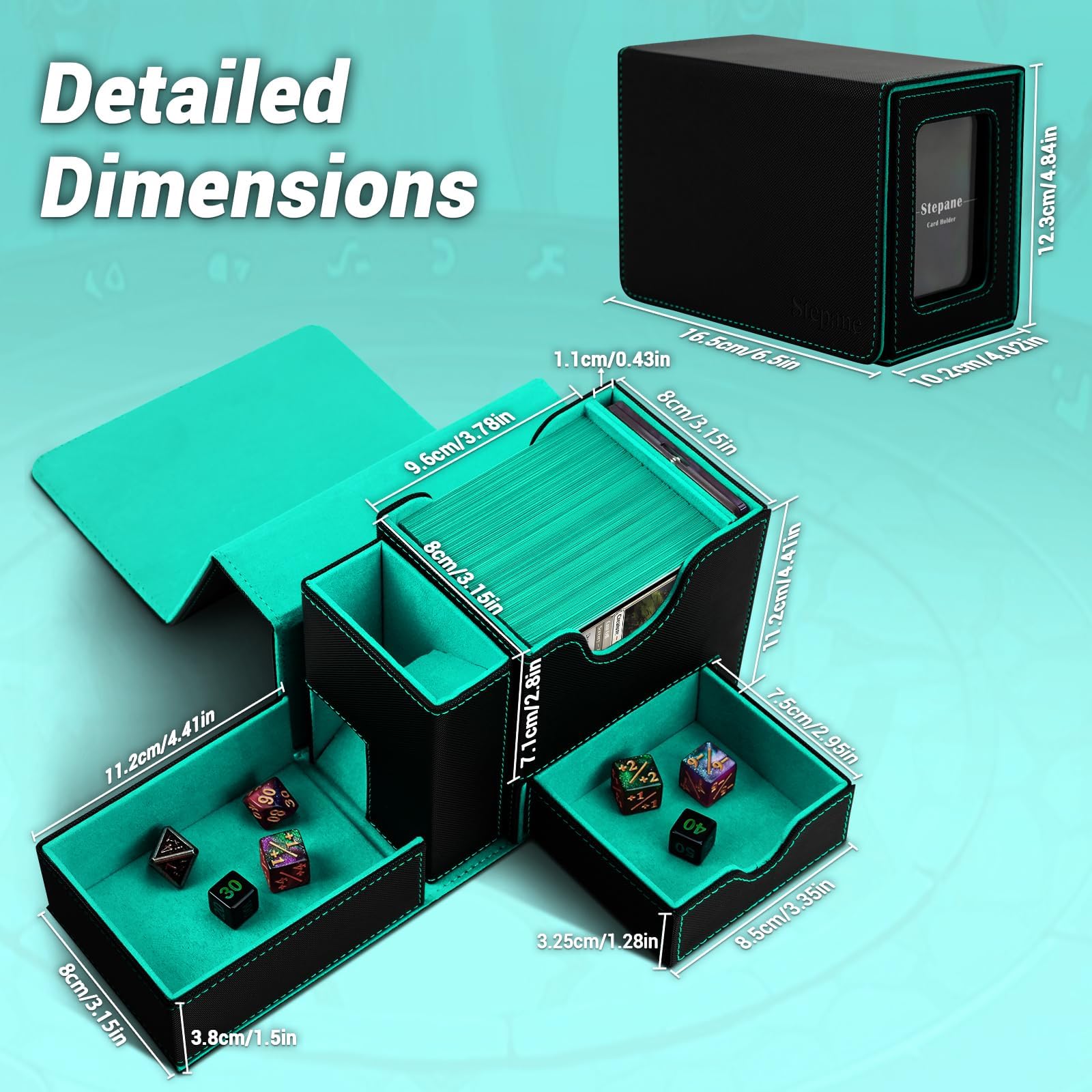 Stepane Mtg Commander Deck Box 2-In-1 Dice Tray & Card Tower 120+ Single-Sleeved Premium Leather Magnetic Box For Tcg/Ccg Cards