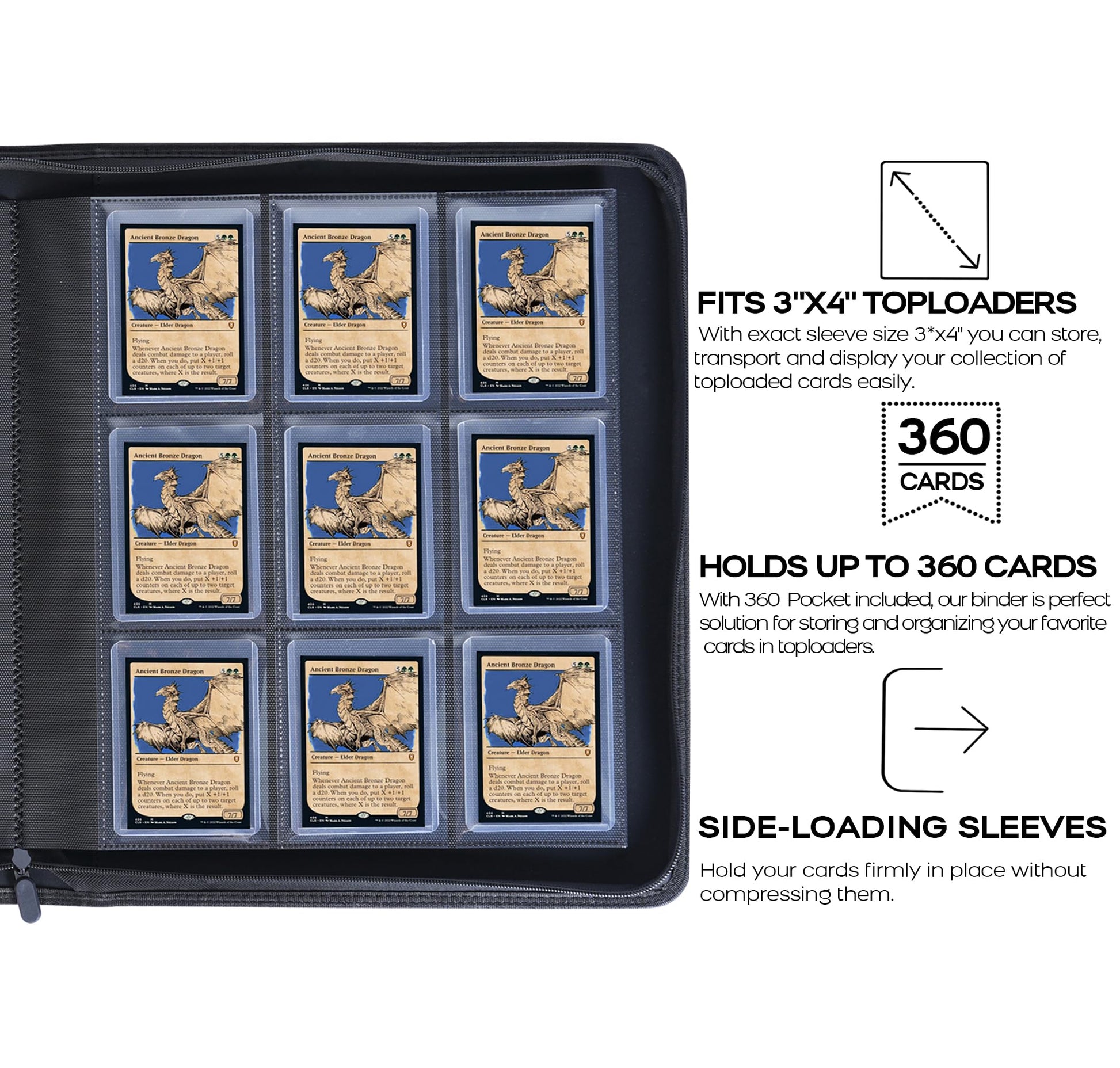 enhanced Toploader Binder for 3X4 Top Loader fits 360 Cards