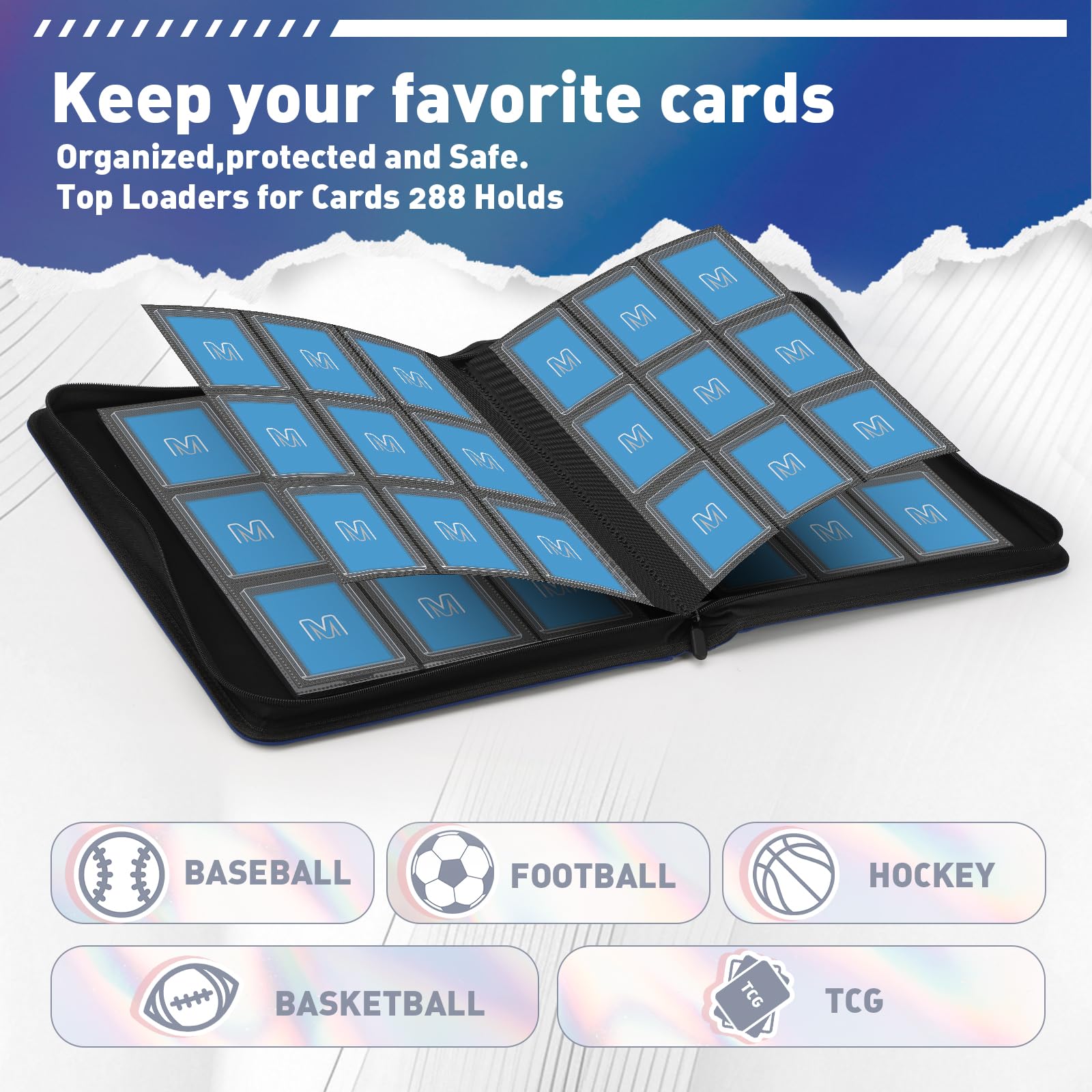 Toploader Binder Trading Card Binder Storage Hold up 288 Cards 9-Pocket Top Loader Binder with Sleeves for 3x4 Rigid Toploaders Hard Cases (9Navy Blue)