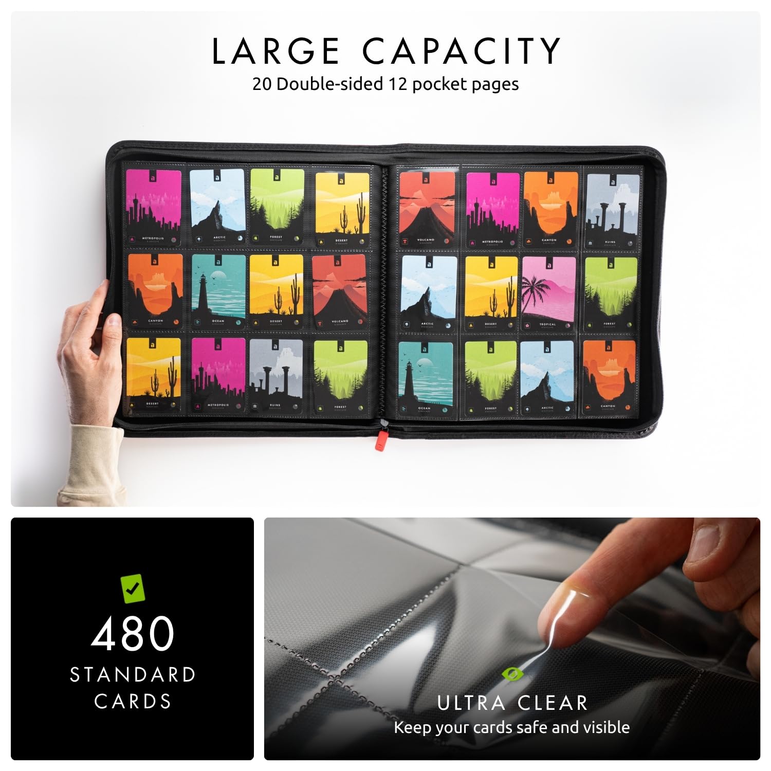 View compareVault X 12 Pocket Trading Card Zip Binder - 480 cards enhanced Exo-Tec Album Material 20 Side-Loading Pages Folder for Collectible Card Games Sports TCG (Red)