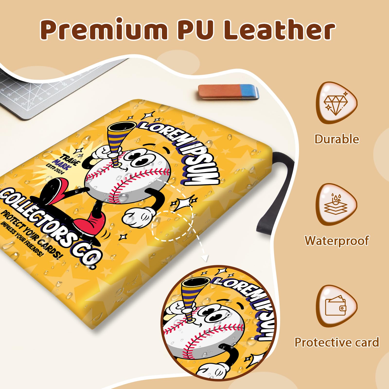 Organize your collection with the Wazzio 900-Card Baseball-Themed Binder! Featuring 50 durable pages (9 pockets per page) its suitable for trading sports and collectible cards. Crafted from enhanced PU leather with an intricate baseball design it offers a sezippered enclosure to protect against spills and dust. Designed for all major card games this collectors edition binder makes an impressive gift for any enthusiast.