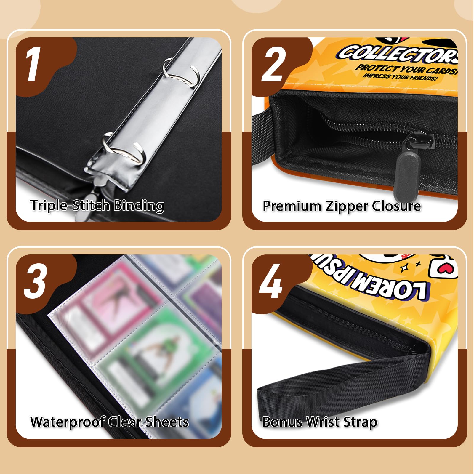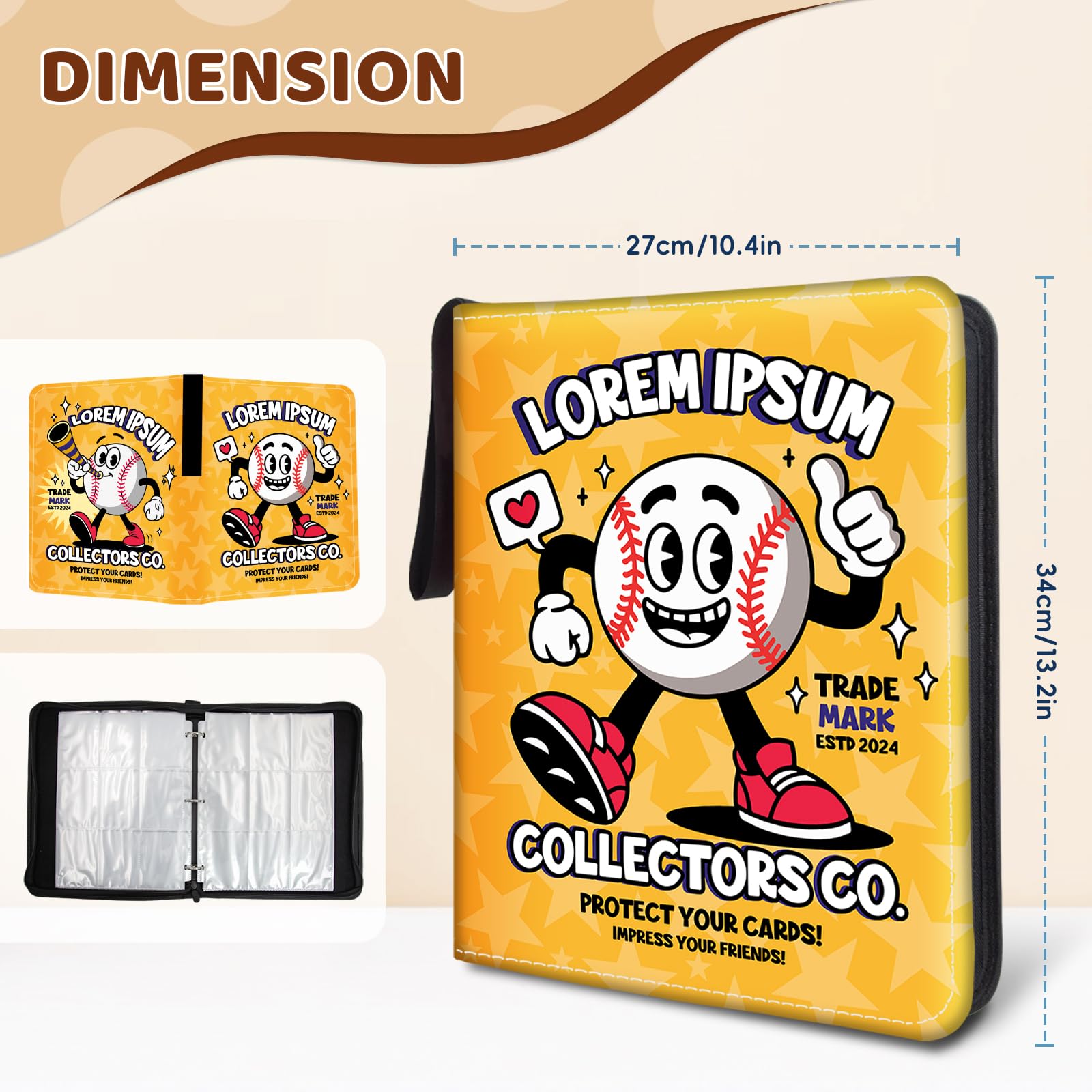 View compareWazzio 900 Pocket Baseball Card Binder Trading Card Storage Album with 50 Durable 9-Pocket Pages Baseball Design on Pocket Card Packs Gifts for Zipper Closure Collector's Album