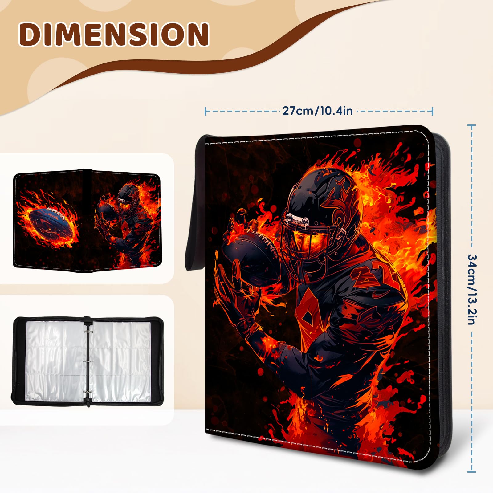 Wazzio 900 Pocket Football Card Binder Trading Card Storage Album with 50 Durable 9-Pocket Pages Football Design on Pocket Card Packs Gifts for Zipper Closure Collector's Album