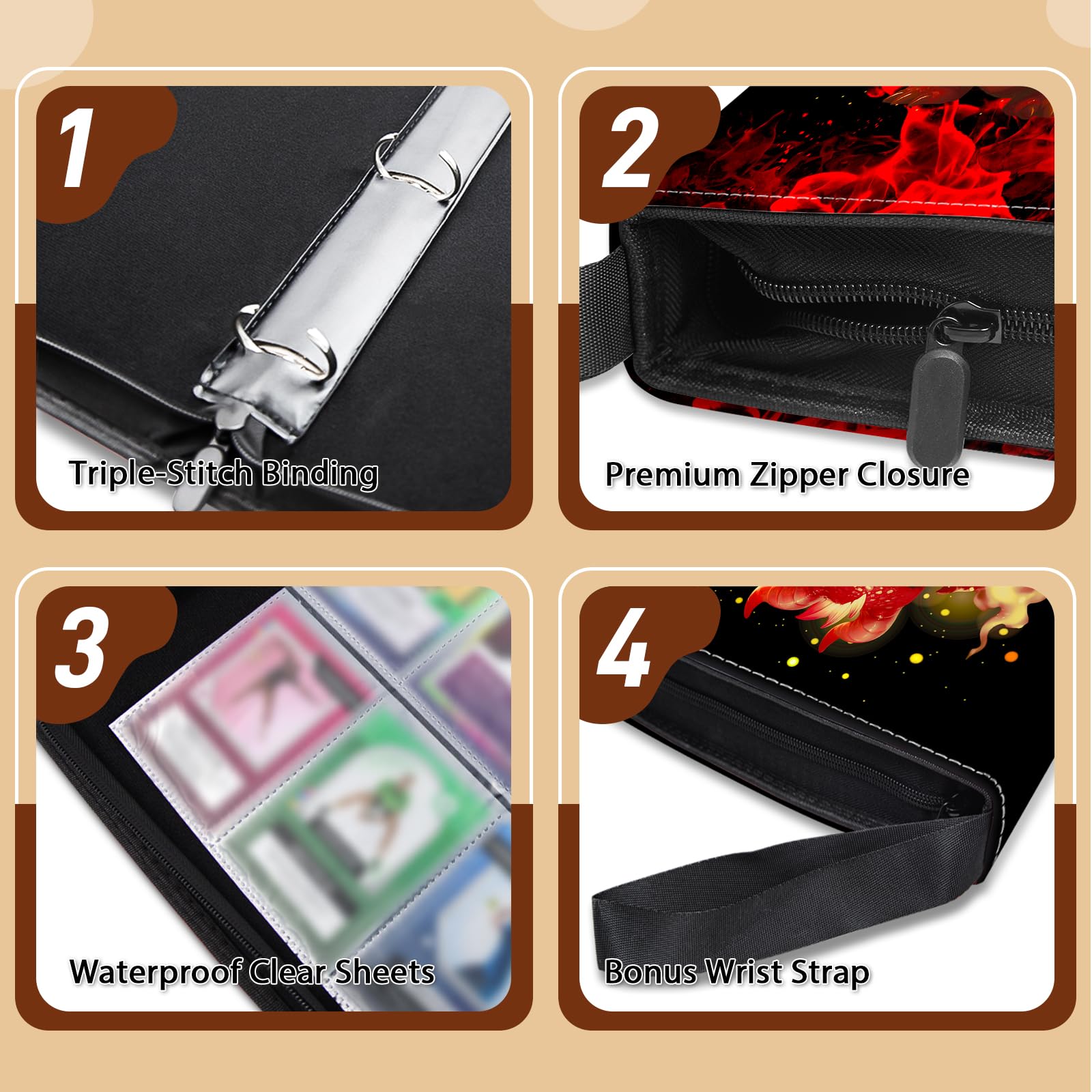 View compareWazzio 900 Pocket Trading Card Storage Album Card Binder with 50 Durable 9-Pocket Pages Pterosaur Dragon Design on Pocket Card Packs Gifts for Zipper Closure Collector's Album