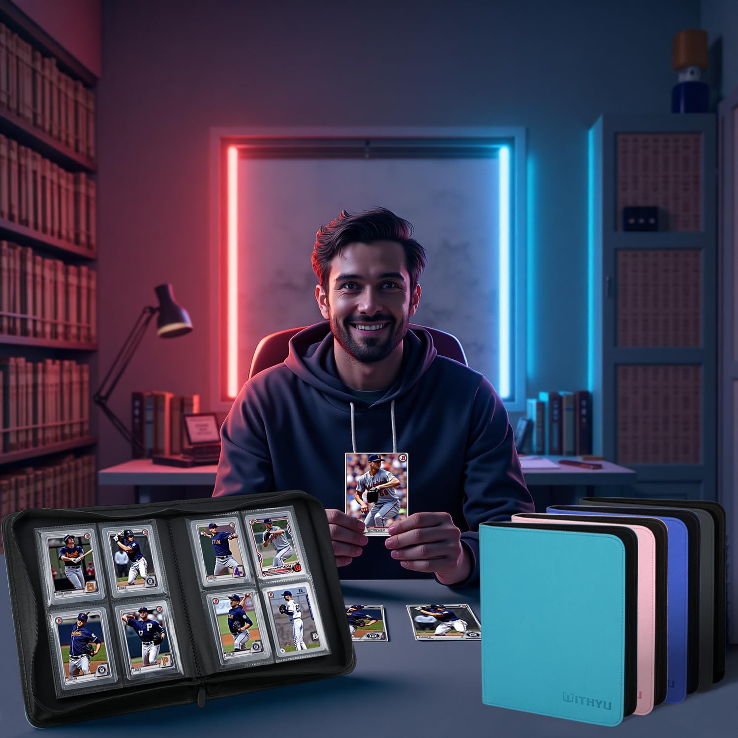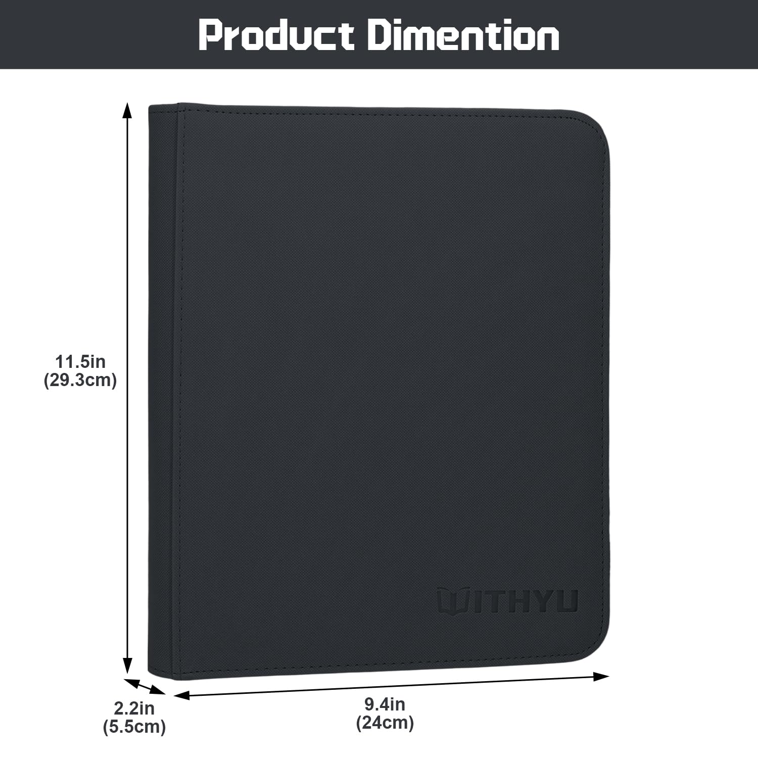 WITHYU Toploader Binder 4 Pocket for 3x4 Rigid Cards Holds 160 Pockets with 8 Toploaders Included Trading Card Binder Album for TCG MTG Sports Collection (Black)