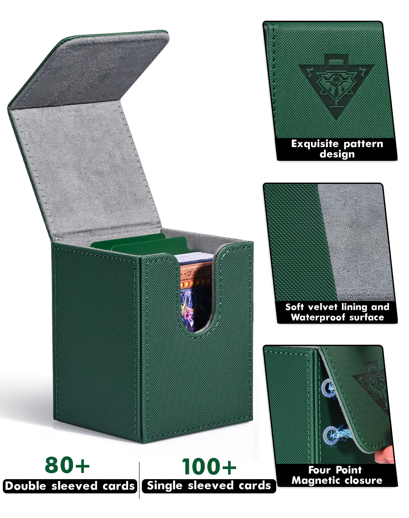 Zlca Card Deck Box For Mtg Yugioh Tcg, Card Storage Box With Dividers Holds 100+ Sleeved Cards, Premium Card Deck Case Compatible With Ccg Trading Cards (Green,Puzzle)