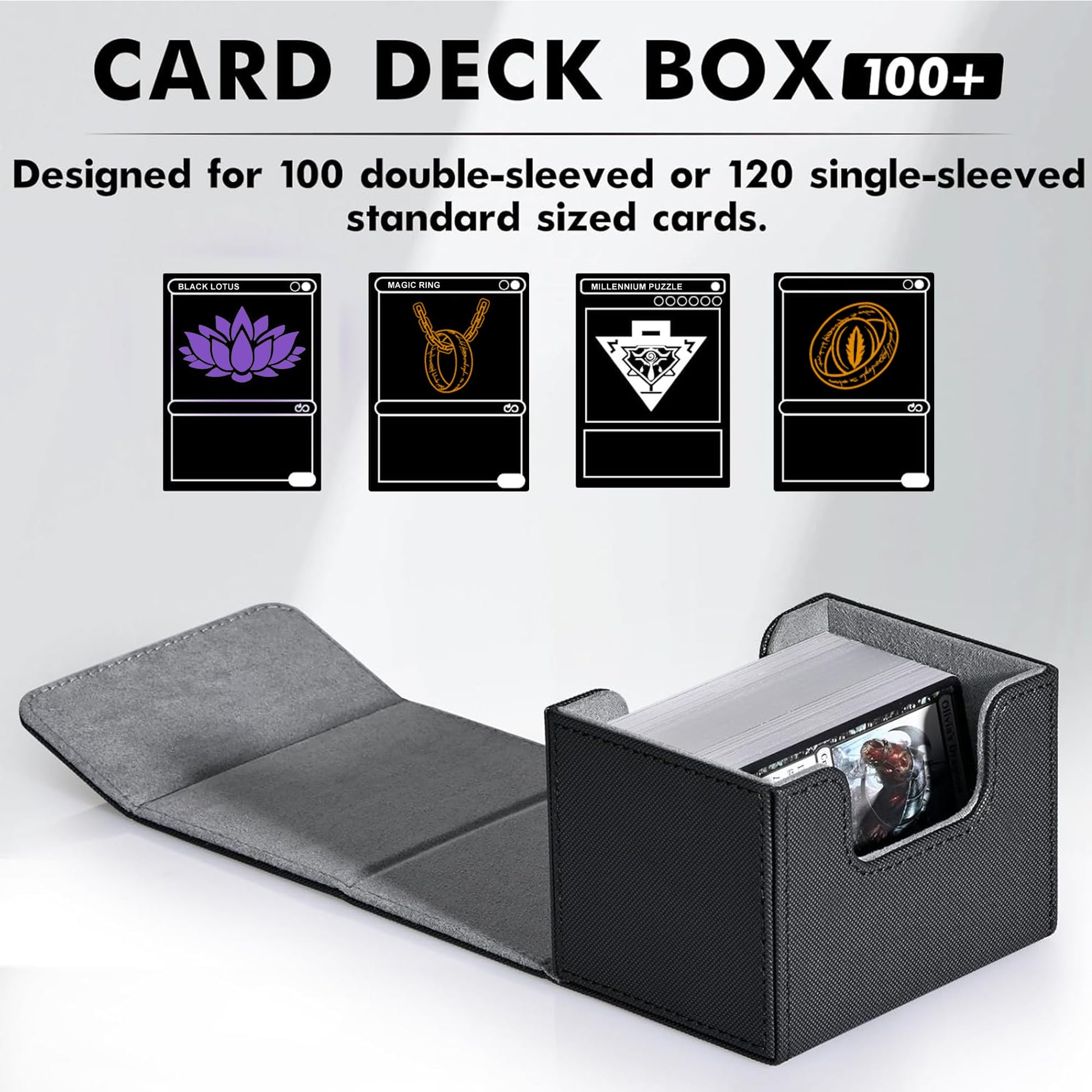 ZLCA Card Deck Box for Trading Cards MTG Commander Deck Box Holds 120+ Single Sleeved Leather Magnetic Card Storage Case Fits for TCG CCG Magic(Black& Dark Green)