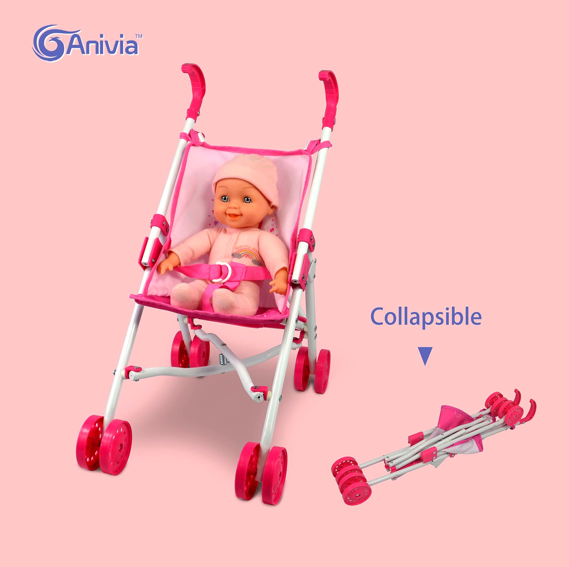 - Q: What age range is the ANIVIA Baby Doll Stroller Set suitable for? A: The ANIVIA Baby Doll Stroller Set is designed for children aged 3 years and up, making it a perfect gift for toddlers who enjoy imaginative play with dolls.