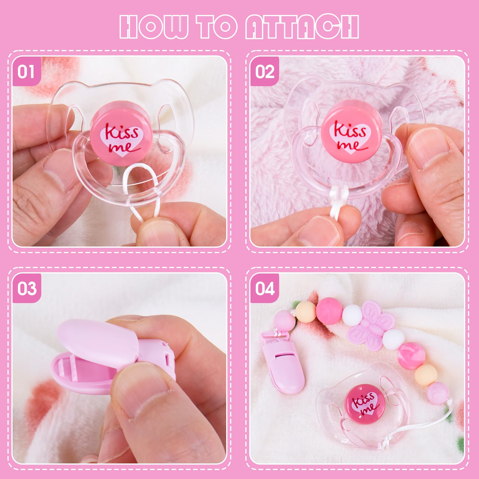 Aori Pacifier Clips For Rebron Baby Dolls Pacifier Holders Silicone Pacifier Clips With Magnetic Pacifier -Pink