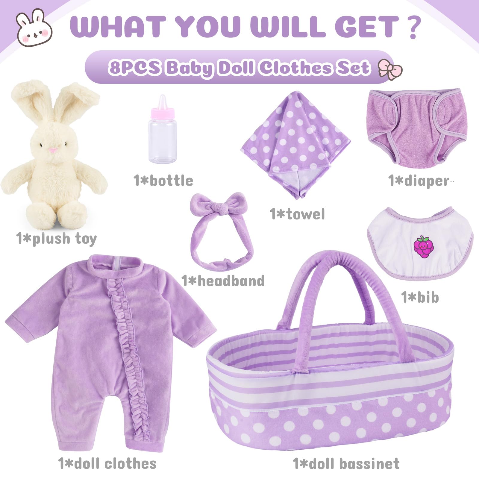 Babeside 8 Pcs Reborn Baby Doll Clothes With Bassinet For 17-22 Inch Baby Doll, Baby Doll Clothes Outfit Accessories Fit Newborn Baby Doll Girl