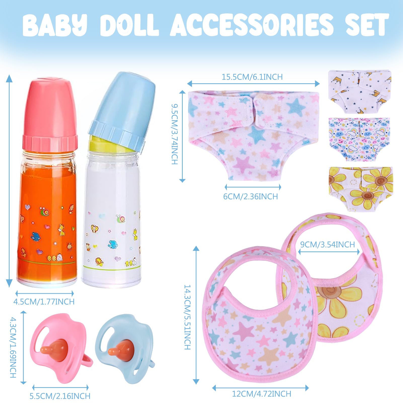 View compareBabeside Baby Doll Accessories Set - 10 Pcs Including Bottles With Disappearing Milk, Pacifier, Bibs, Diapers - Pretend Play Fee