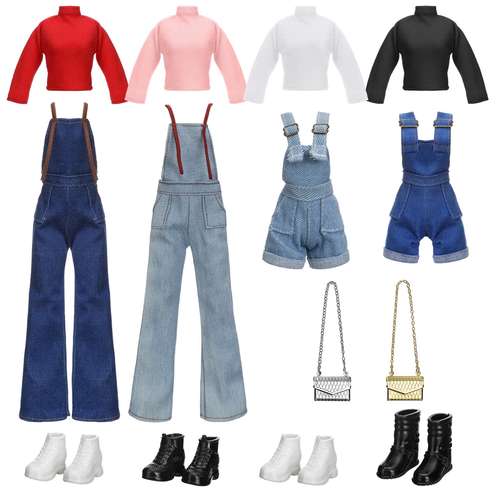 Geyoga 14 Pcs Doll Clothes And Accessories For 11.5 Inch Doll Accessories Doll Denim Cotton Doll Cloth Doll Pants Shoes Casual Wear Clothes Outfits(Stylish Style)