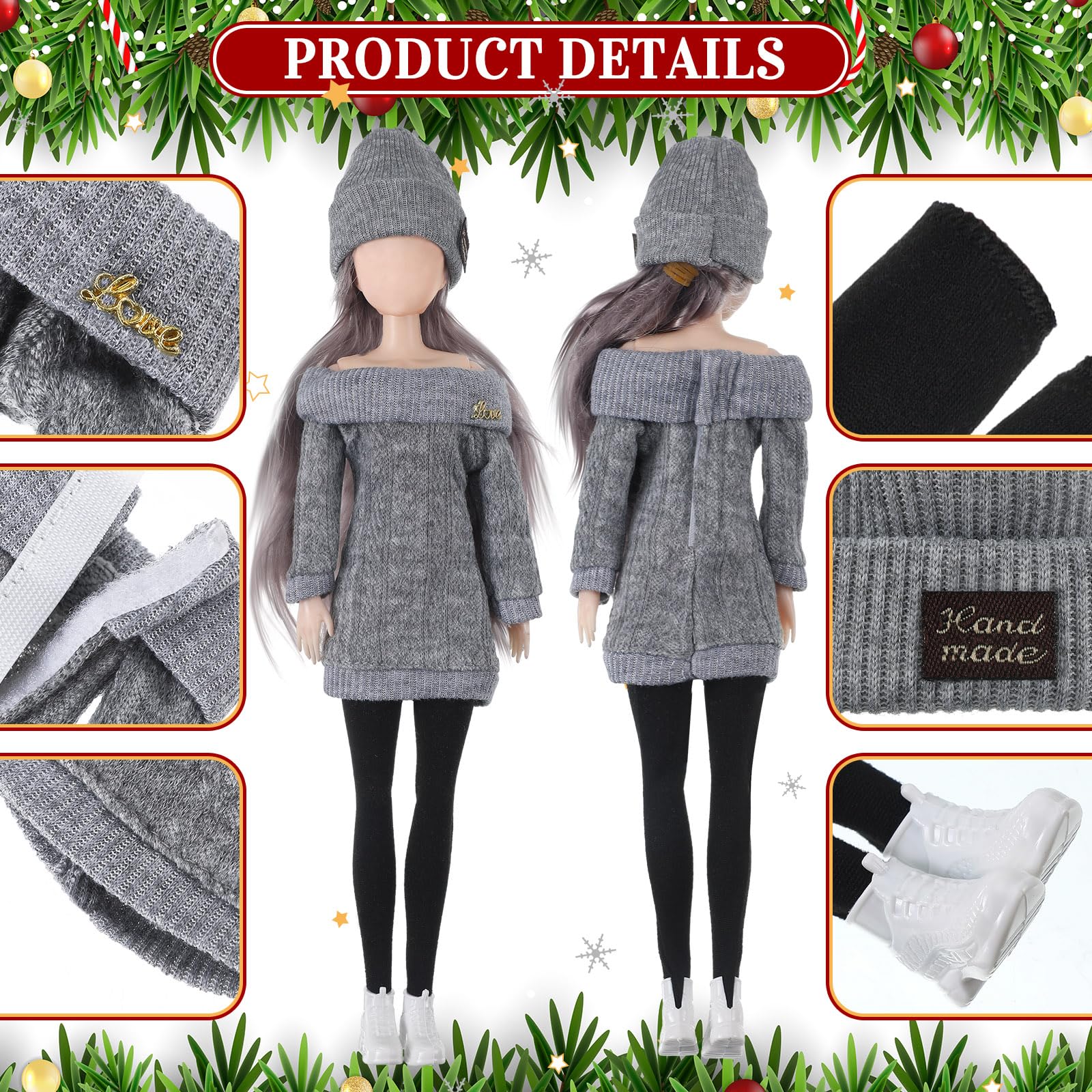 View compareGeyoga 3 Set 12 Pcs Doll Clothes And Accessories Suit Pants Shoes Spring Sweater Outfits, Dolls Are Not Included(Gray, Brown, Cream White,12 Inch)