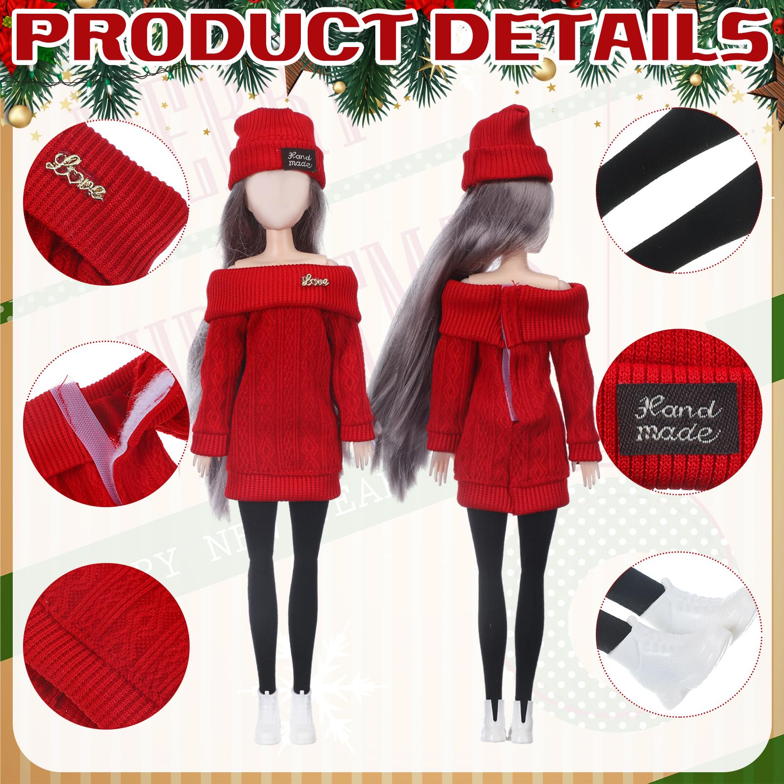 View compareGeyoga 3 Set 12 Pcs Winter Doll Clothes And Accessories Doll Suit Doll Pants Shoes Winter Sweater Outfits, Dolls Are Not Included(Red, Green, Black,12 Inch)