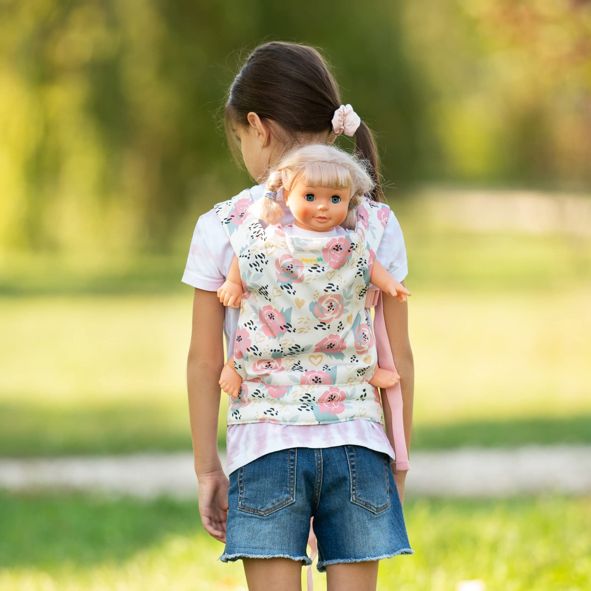 Happyvk Baby Doll Carrier For Little Girls Kids Toy Baby Carrier For Reborn Baby Doll Accessories Pink Roses