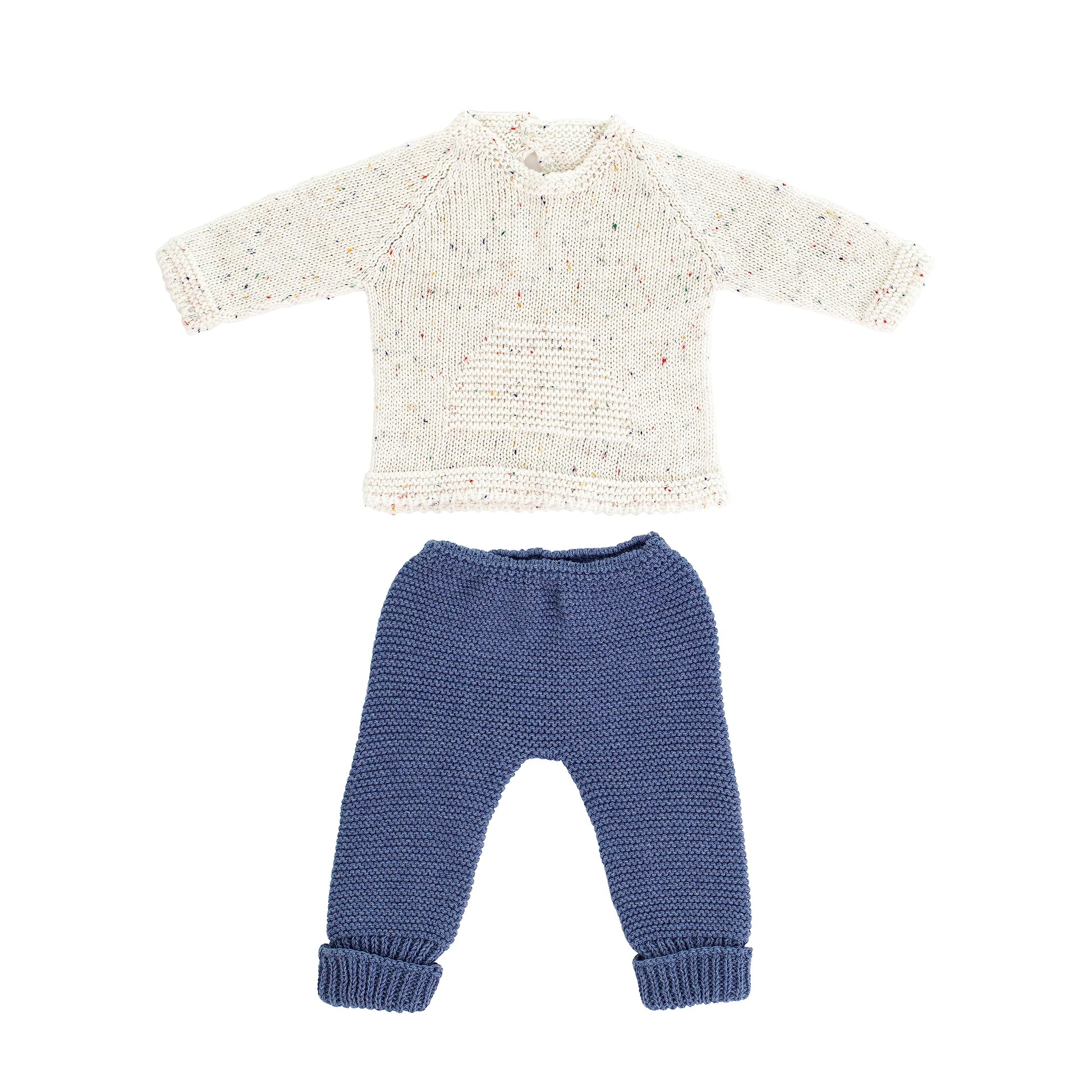 Miniland Clothes For Dolls 15 3/4'' Knitted Outfit Sweater & Trausers - Eco, Made In Spain, Quality, Role Play, Educational