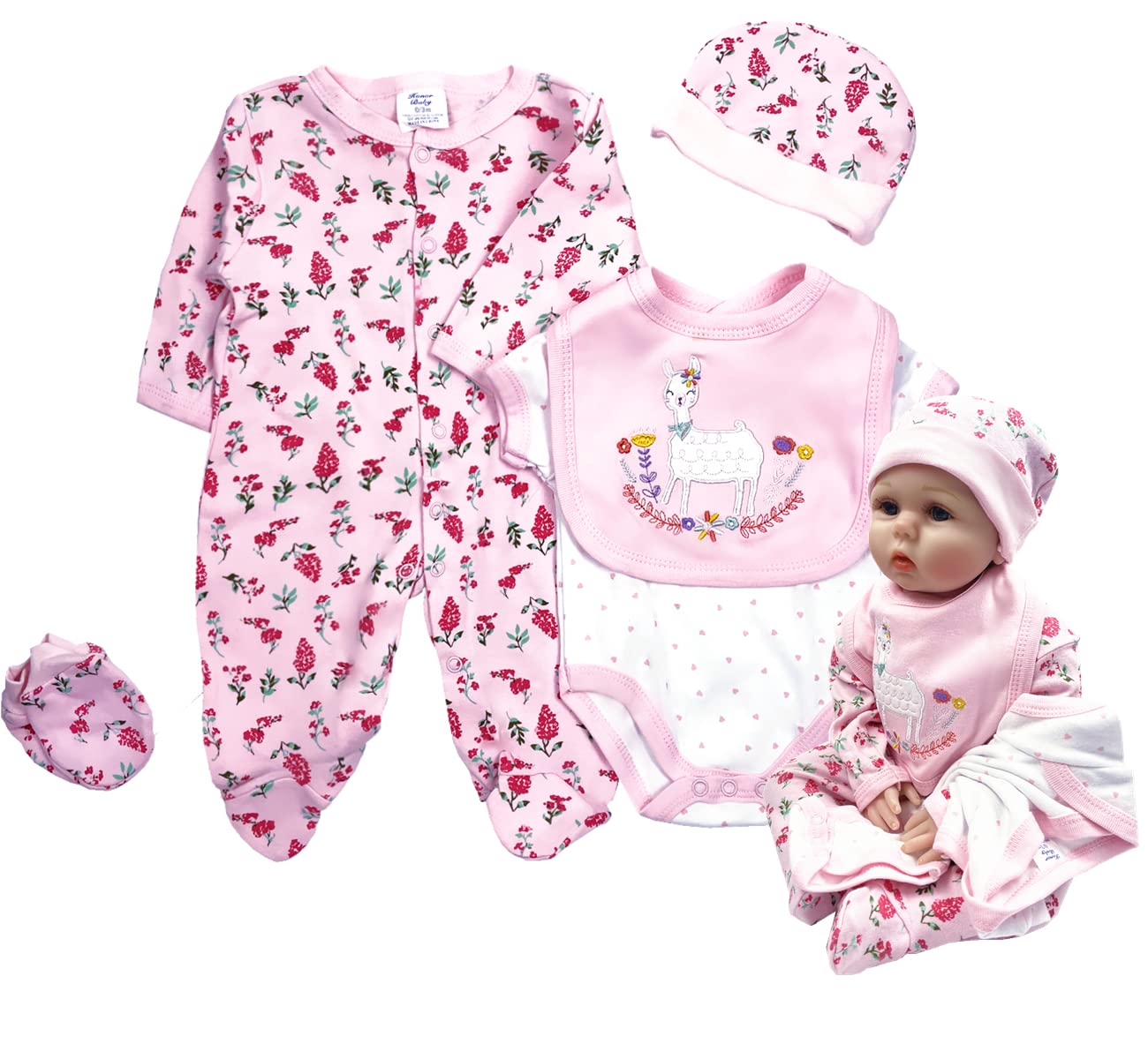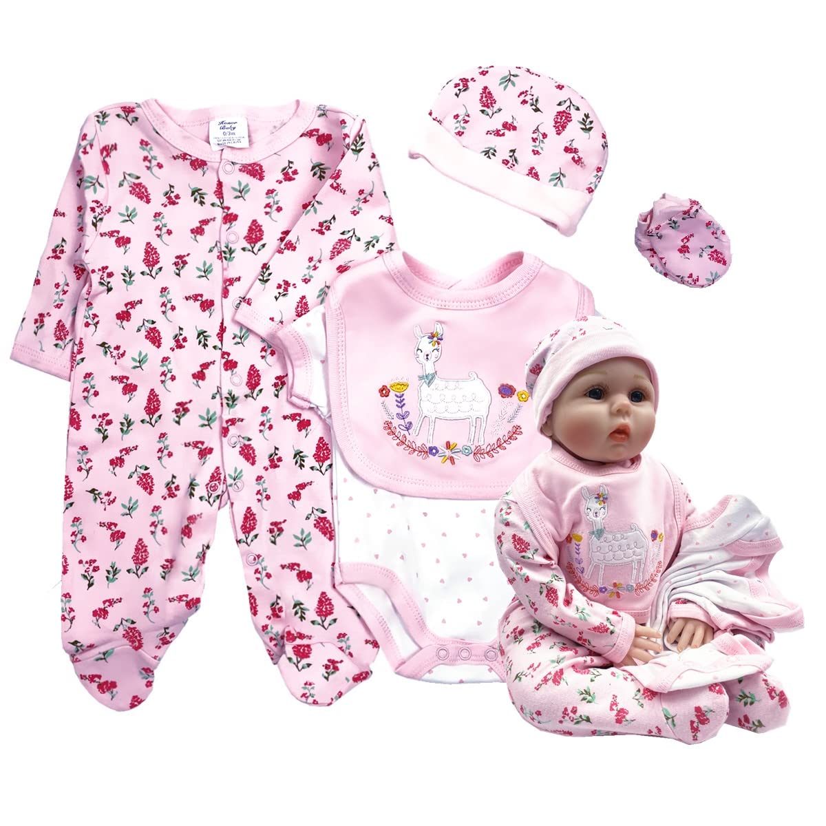 Reborn Baby Doll Clothes 22 Inch Flowers & Deer 5Pcs Set For 20-23 Inches Reborn Baby Girl Newborn Alive Doll Clothes