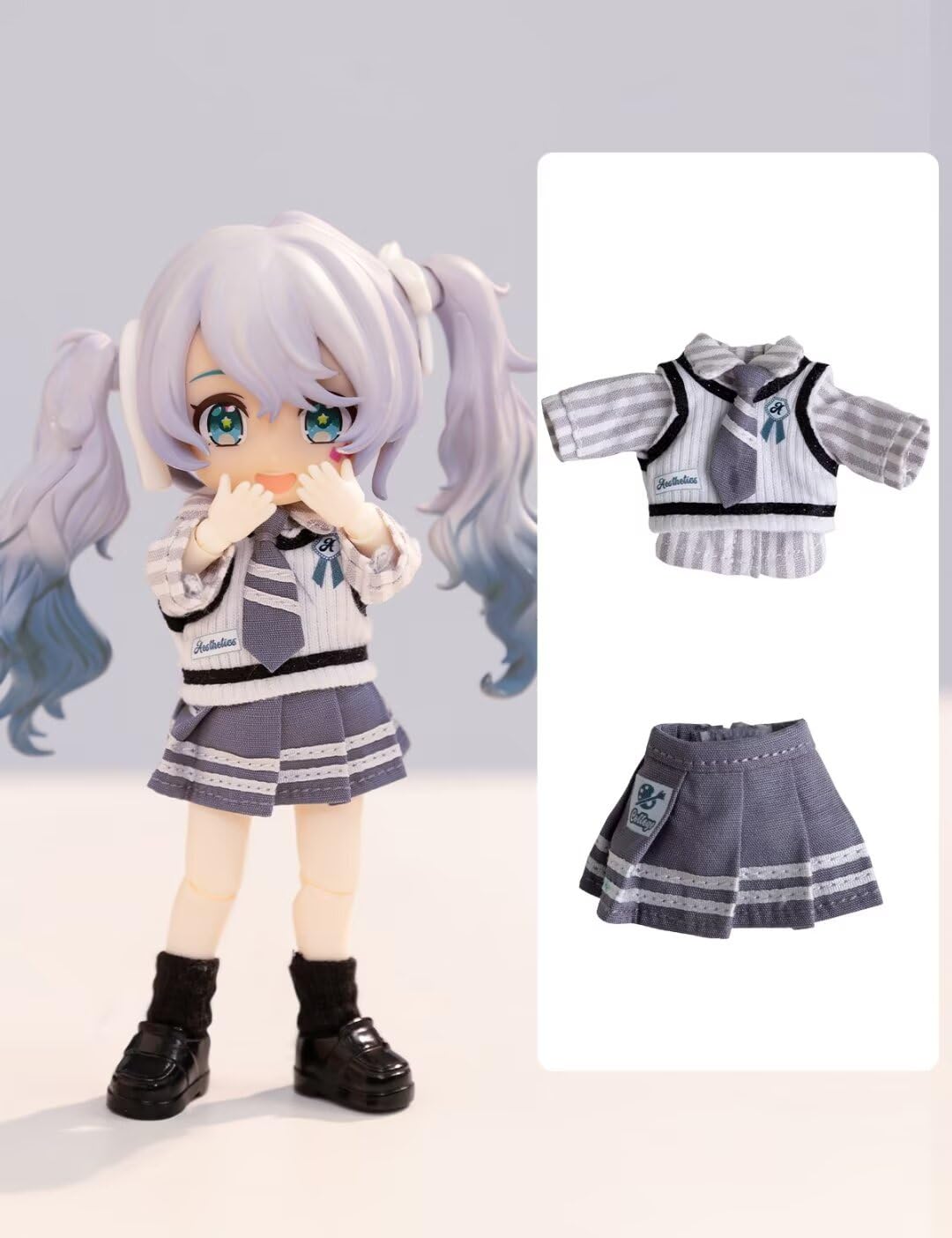 View compareYmy Ob11 Doll Clothes 1/12 Scale Shirt Tie Waistcoat Dress Girls Uniform Set For Bjd Gsc Doll Clothing(Blue)