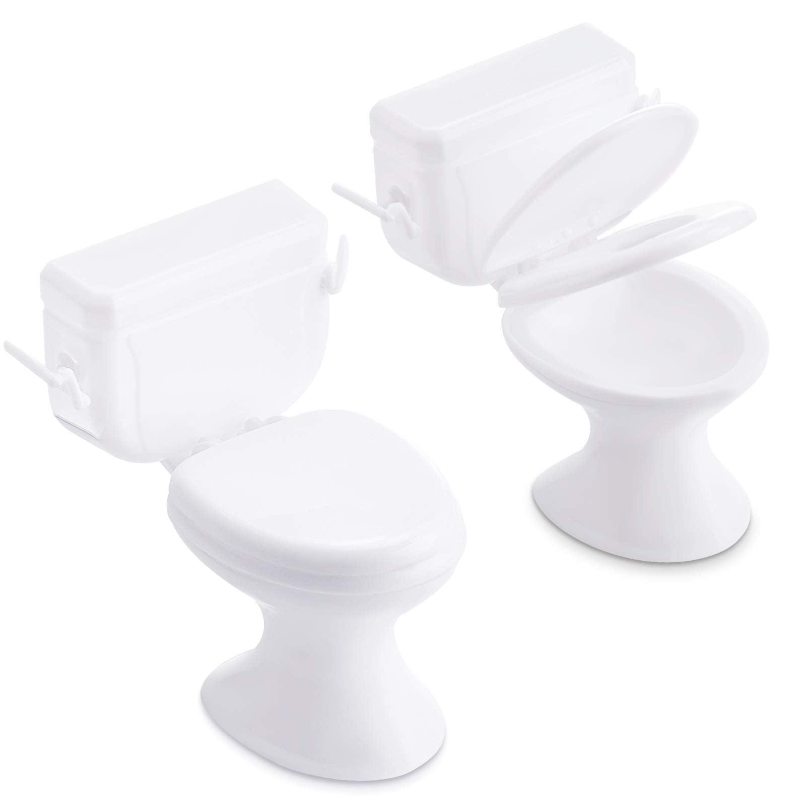 2 Pieces Mini Toilet Seat Toy Doll House Furniture Miniature Classic Bathroom Baby Toilet Toy Tiny Cake Topper Bathroom Furniture Dollhouse Accessories (White)