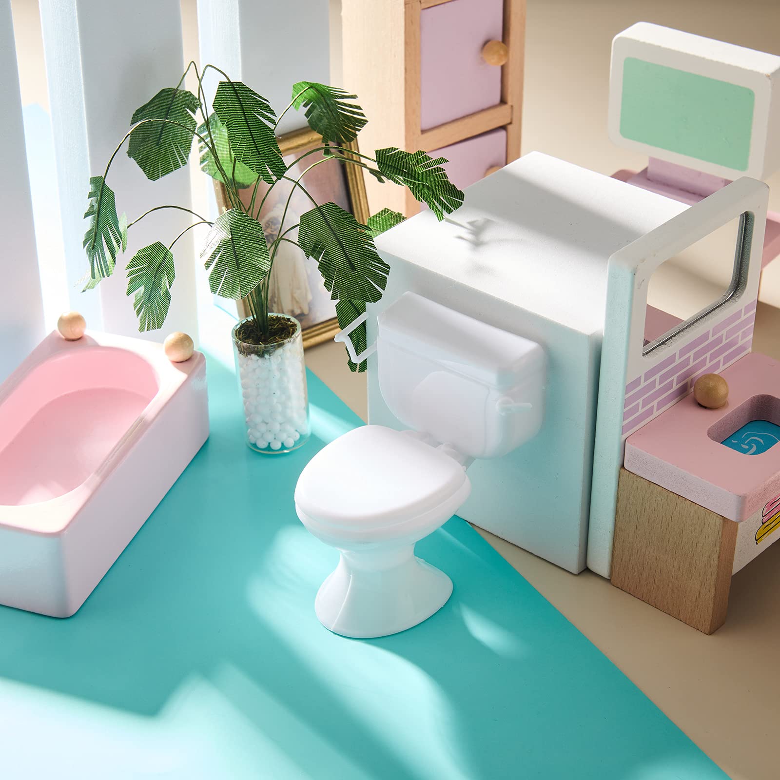 These tiny toilets in the doll house have a simulation design to make dollhouse scene look vivid, which will complement the decoration of your little doll house and add a little fun and realism to the miniature doll house.