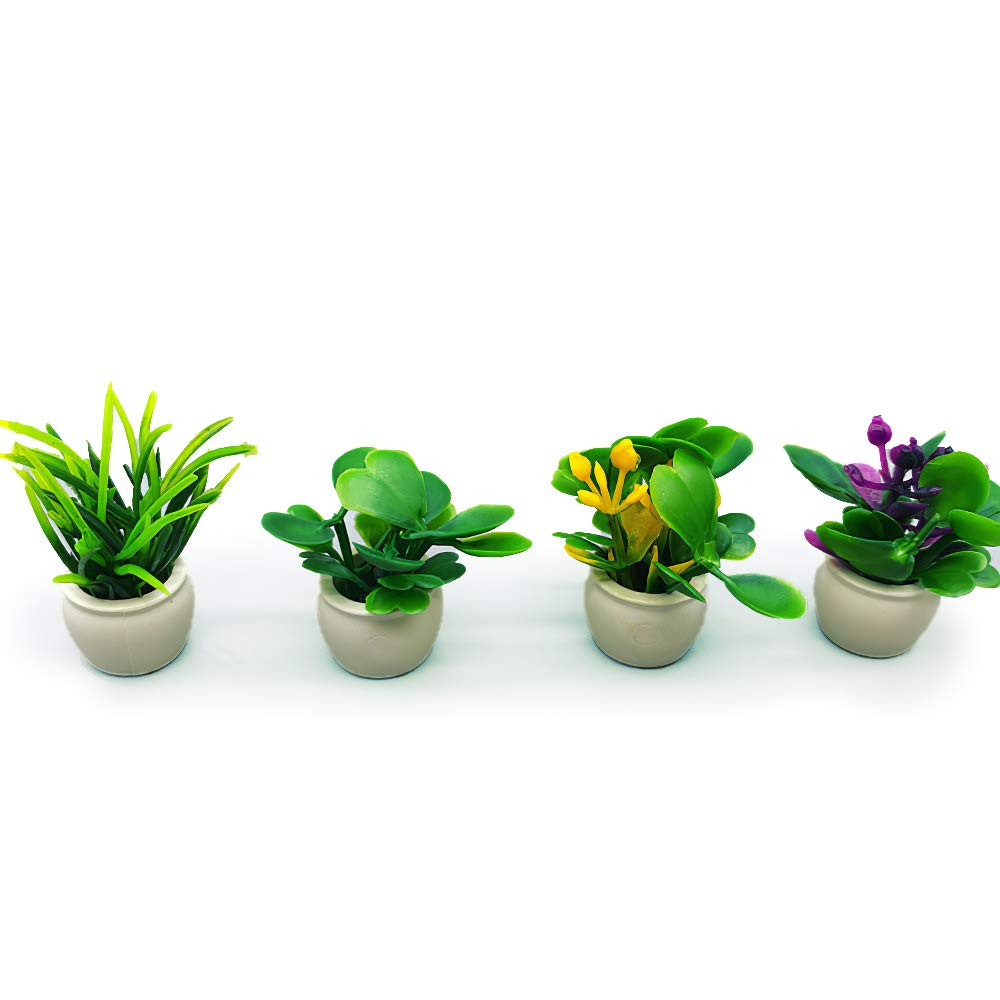 Dollhouse Decoration Plant Pots Miniature Green Potted Miniature Bonsai Model Dollhouse Accessories Decor,1 12 Scale Doll House Miniature Plant Model (4 Different Flower Bots)
