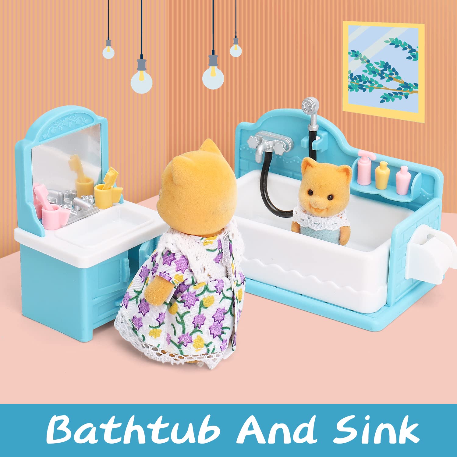 Dollhouse Furniture Set For Kids Toys Miniature Doll House Accessories Pretend Play Toys For Boys Girls & Toddlers Age 3+ With Bathroom