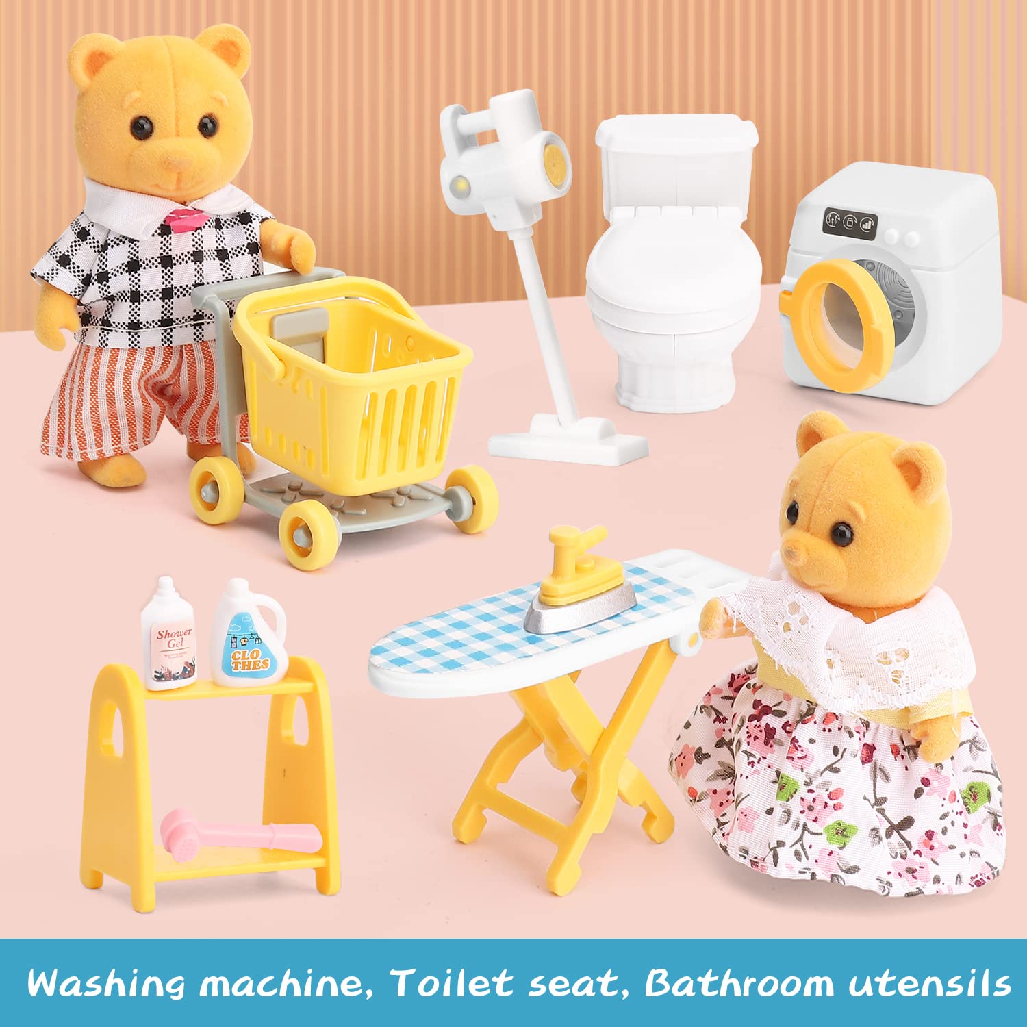 - Q: What accessories are included in the Dollhouse Furniture Set? A: The set includes a variety of bathroom accessories such as a bathtub, sink, toilet, washing machine, iron, mop, and other essential bathroom supplies for creative play.