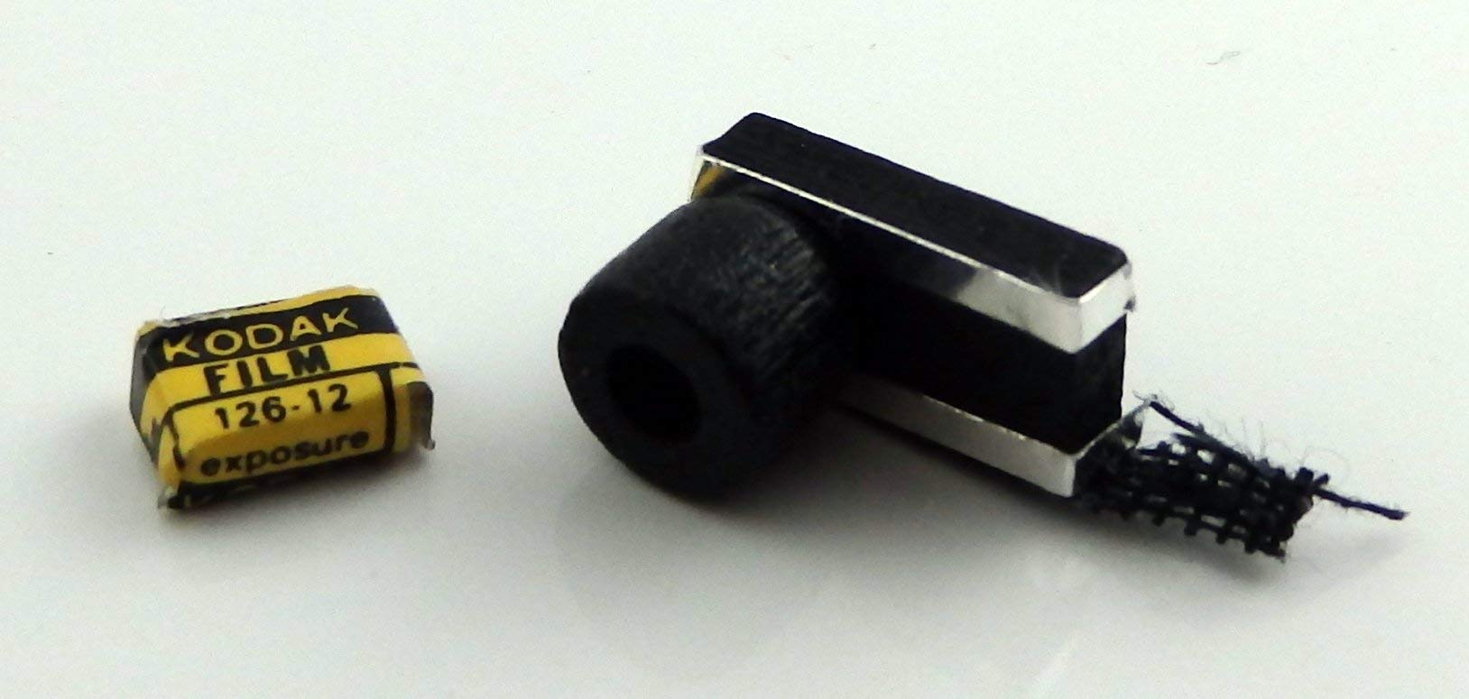 Complete Your Dollhouse And Miniature Collection With Camera W/Film. We Are Your Source For Superior Dollhouse Miniatures. Size: 3/8''W X 9/16''L X 3/8''H. Film- 3/8''L X 1/8'' Diameter.