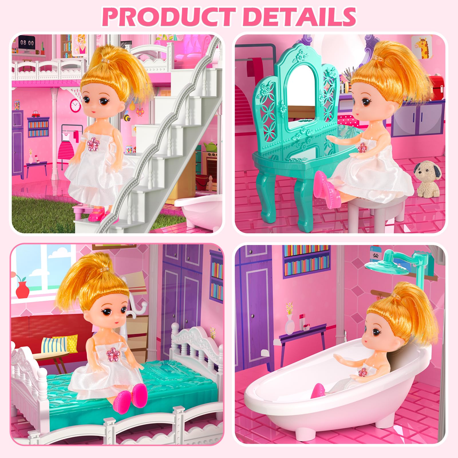 Dollhouses, Housetoys Furniture Pink Girl Toys, 4 Stories 10 Rooms Dreamhome With 2 Princesses Slide Accessories, Toddler Playhouse Gift For For 3 4 5 6 7 8 9 10 Year Old Girls Toys
