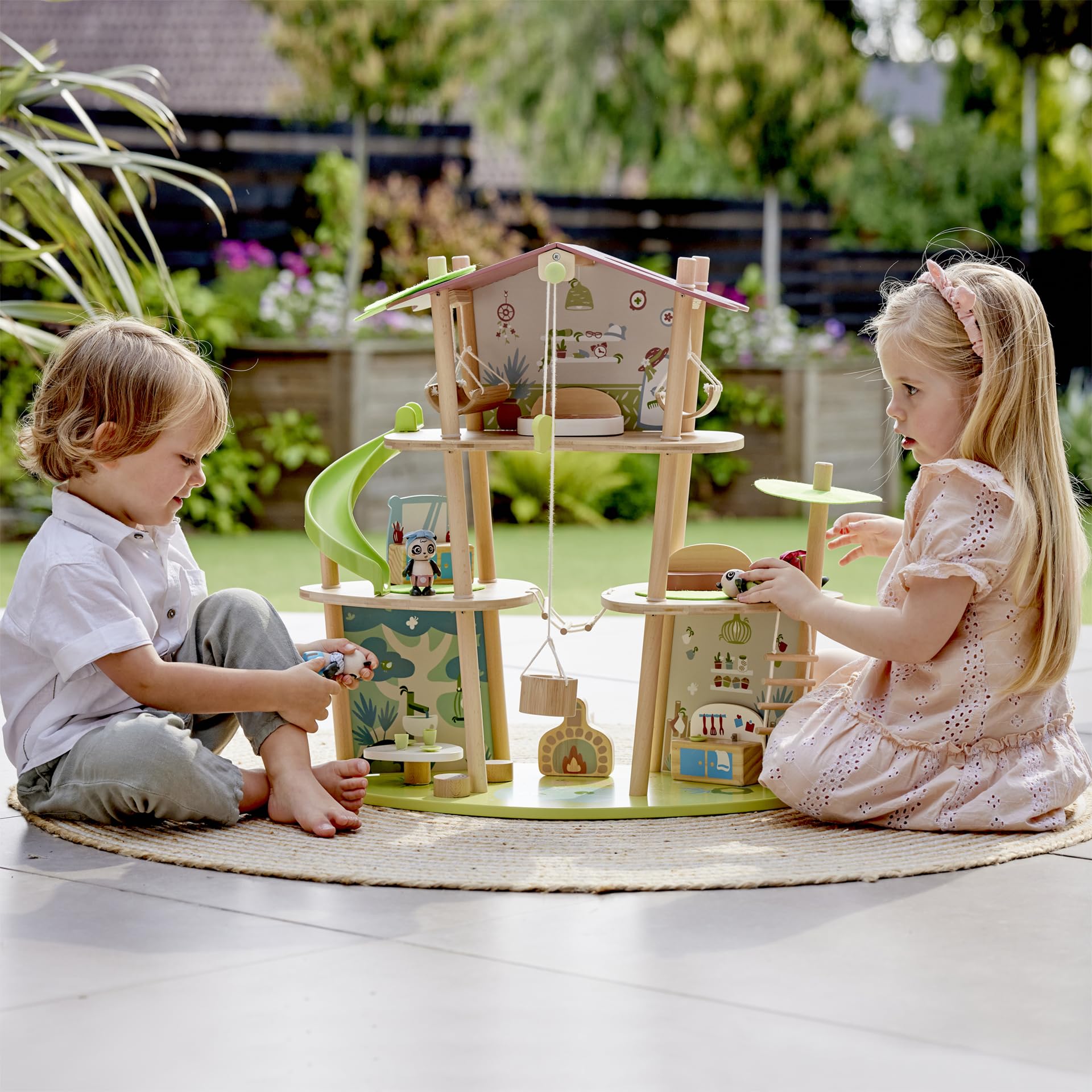 Hape Pandas Bamboo House, Green Planet Explorers | Educational Toy Doll House with Furniture, for Children Ages 3+ Years