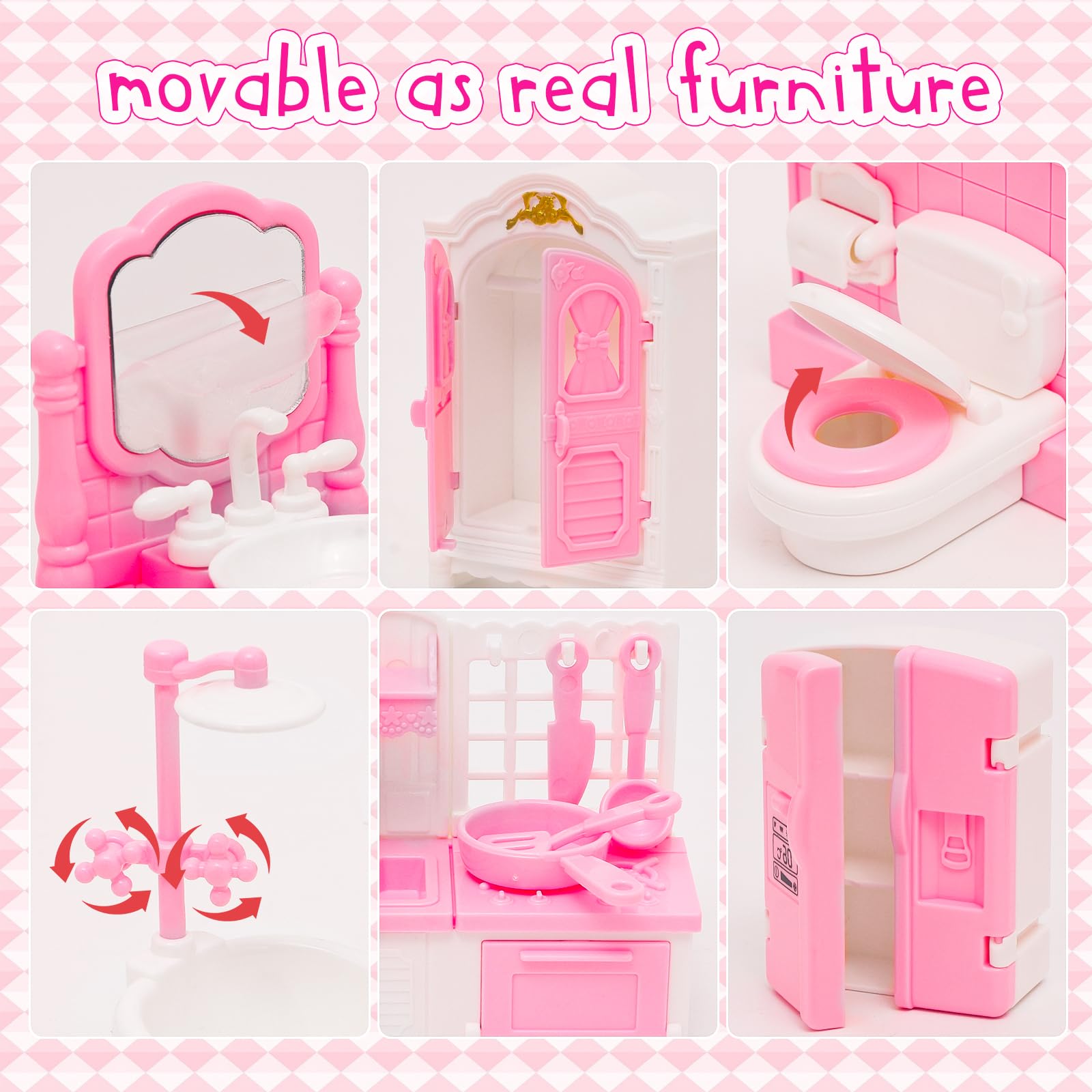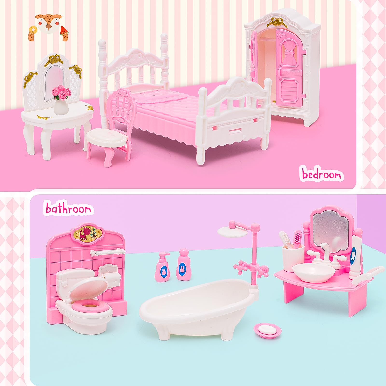 View compareHapgfs 45 Pcs Dollhouse Furniture Set Accessories Doll House Mini Furniture Pretend Play Bedroom Living Room Bathroom Kitchen Fo