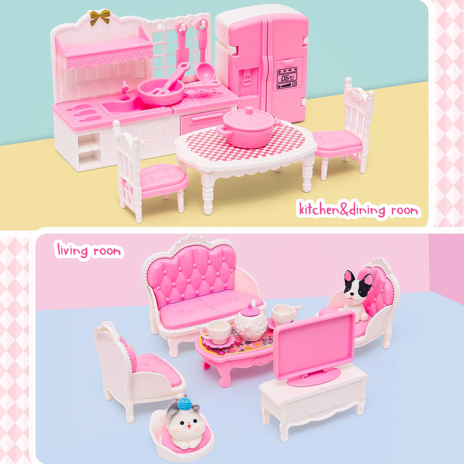 Doll House Furniture And Accessories Set Dollhouse Furniture Set Pink