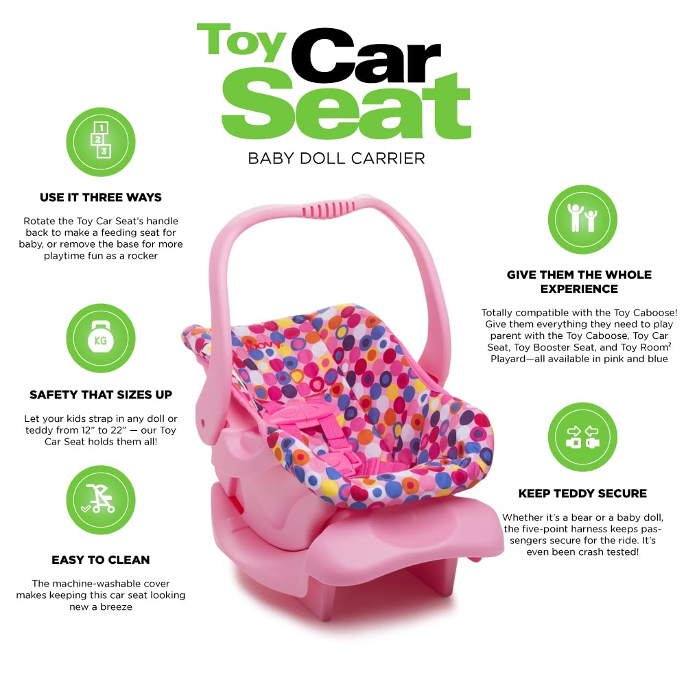 View compareJoovy Toy Car Seat for Baby Dolls, Pink, Crash-Tested Latch, Machine-Washable Cover, Fits 12” to 22” Dolls, 21.5 x 13 x