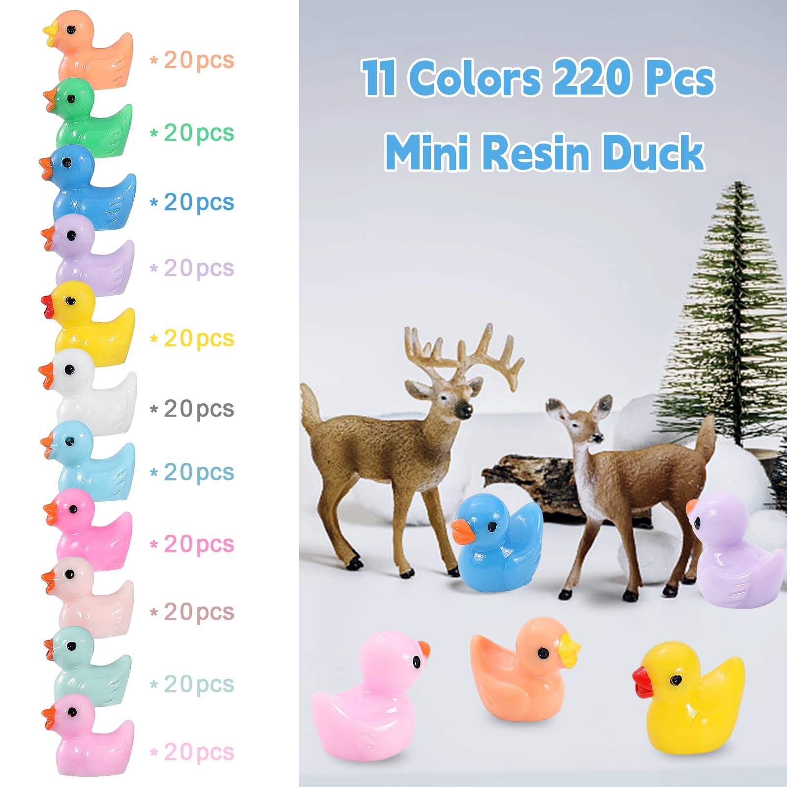 Introducing the 220 Pieces Mini Resin Duck Set by LOUHUA, an enchanting collection of tiny duck figures that will capture the hearts of both children and adults. This delightful set includes 220 pieces of adorable mini ducks in 11 vibrant colors, with 20 pieces for each color, making it the perfect addition to your crafting supplies or decorative needs.