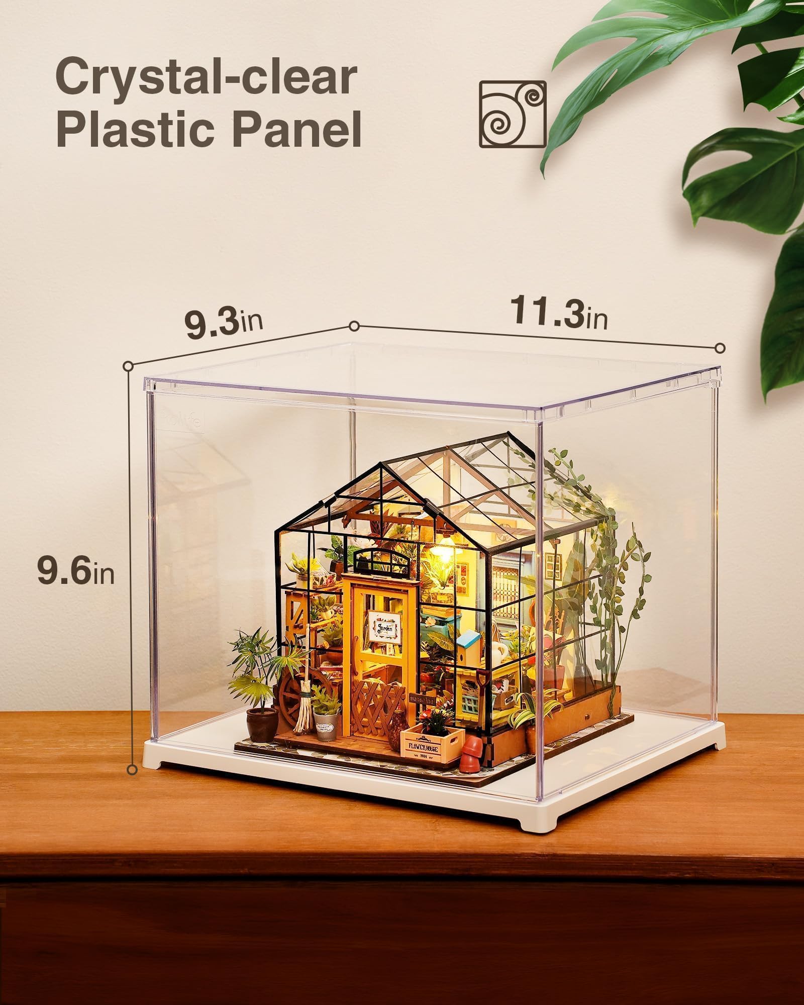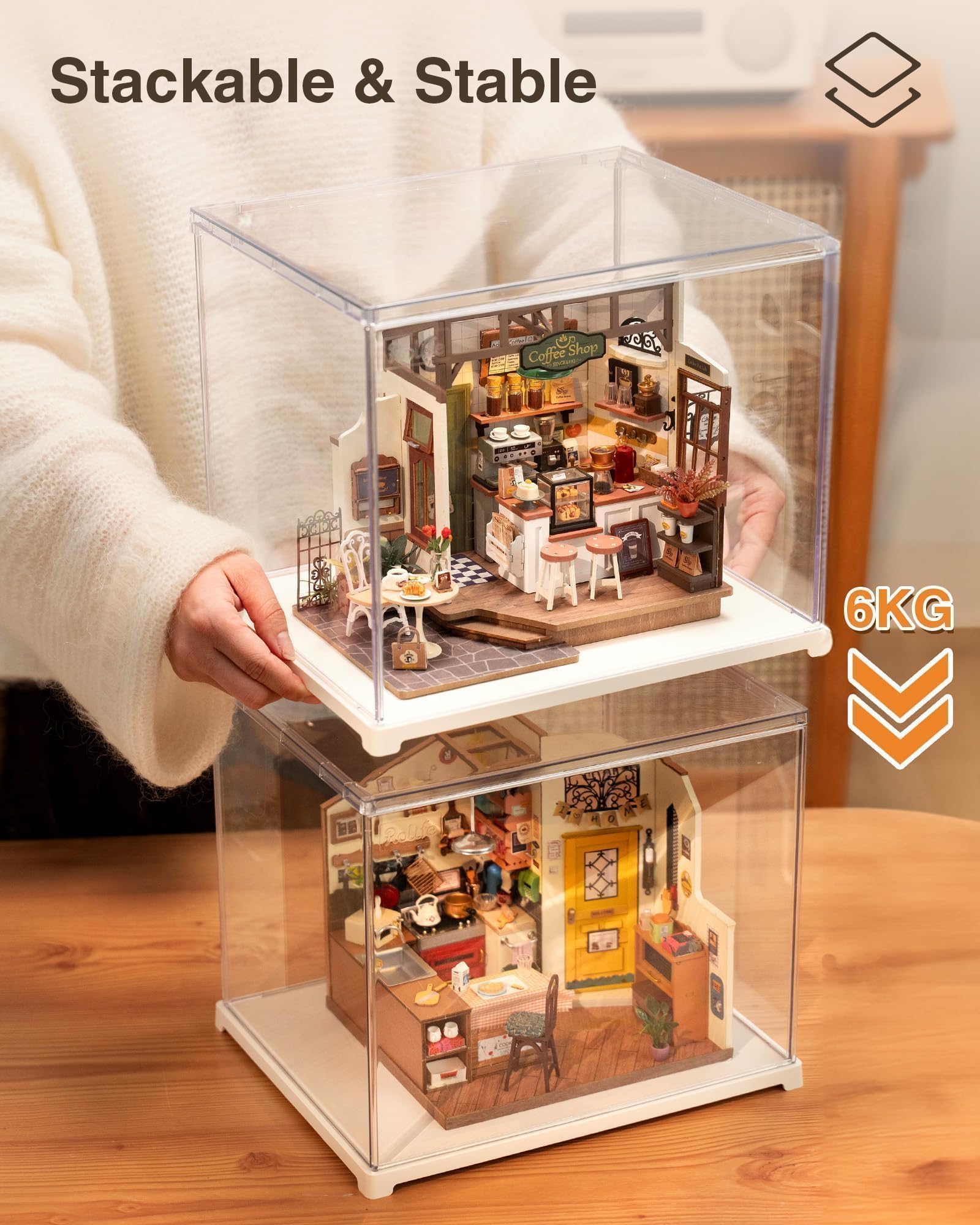 Rolife Clear Acrylic Display Case For Hobby Collectibles, Easy Assemble Dust Cover Showcase Clear Storage Bins, Stackable Storage Plastic Box With Wooden Base