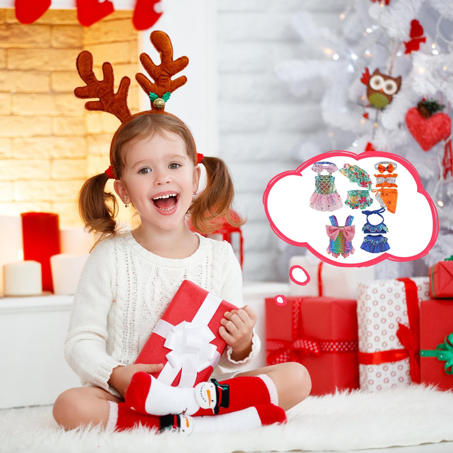 Baby Doll Clothes Outfits for 18 Inch Doll Girl Baby Swimsuit Clothing Sets ?Product Details:? ?Unique style ?Cute flower pattern ?Multilayer design ?What you get:? High-quality doll clothes set includes: 9 Sets ?4 Sets Lovely Girl Doll Mermaid Dress Outfits ?5 Colorful Swimsuit with Tight Underwear Hair Bands for Dolls ?Take care: Dolls in the picture are not included. ?Material:? The materials used in the doll clothes are safe and soft enough for children to play all day. Rest assured, our suits have undergone a 48-hour soaking test without any impact on color or shape. Hand washing is recommended for long-lasting playtime. ?Feature:? ?Doll clothes are fashionable and colorful, attracting the interest and attention of little girls. ?Children can mix and match these toy doll accessories at will, providing a lot of fun for little girls. ?Best gifts for children's birthdays, Christmas and other holidays.