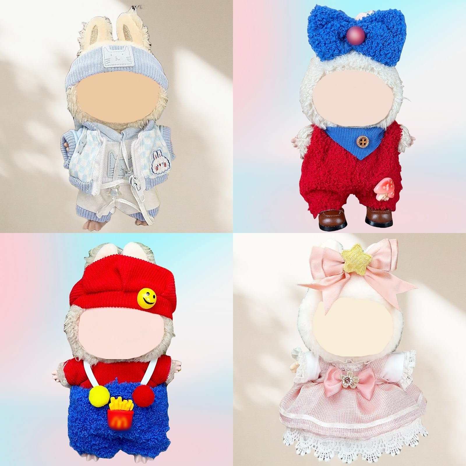 4 Unique Styles To Elevate Your 17Cm Doll'S Wardrobea Perfect Gift For Collectors,This Adorable Outfitset Enhancesthe Charm Of Your Plush Doll And Makes Fora Thoughtfuland Unique Present.It Is Perfect Gift For Your Family Or Friends On Christmas, Valentine'S Day, Mother'S Day, Father'S Day, Birthdays, Anniversaries Etc.Note:&Nbsp; One Set Contains Four Sets Of Doll Clothes. All Sets Do Not Include The Shoes And Doll. The Shoes In The Picture Are Only For Your Reference. &Nbsp;If You Need Shoes, You Can Buy Them Separately. We Will Also Update The Shoes Suitable For 17Cm Doll For You To Choose. Lf You Have Any Questions Or Problems With The Products You Received, Please Contact Us In Time Clothes Should Be Worn From The Feet, Not The Head.
